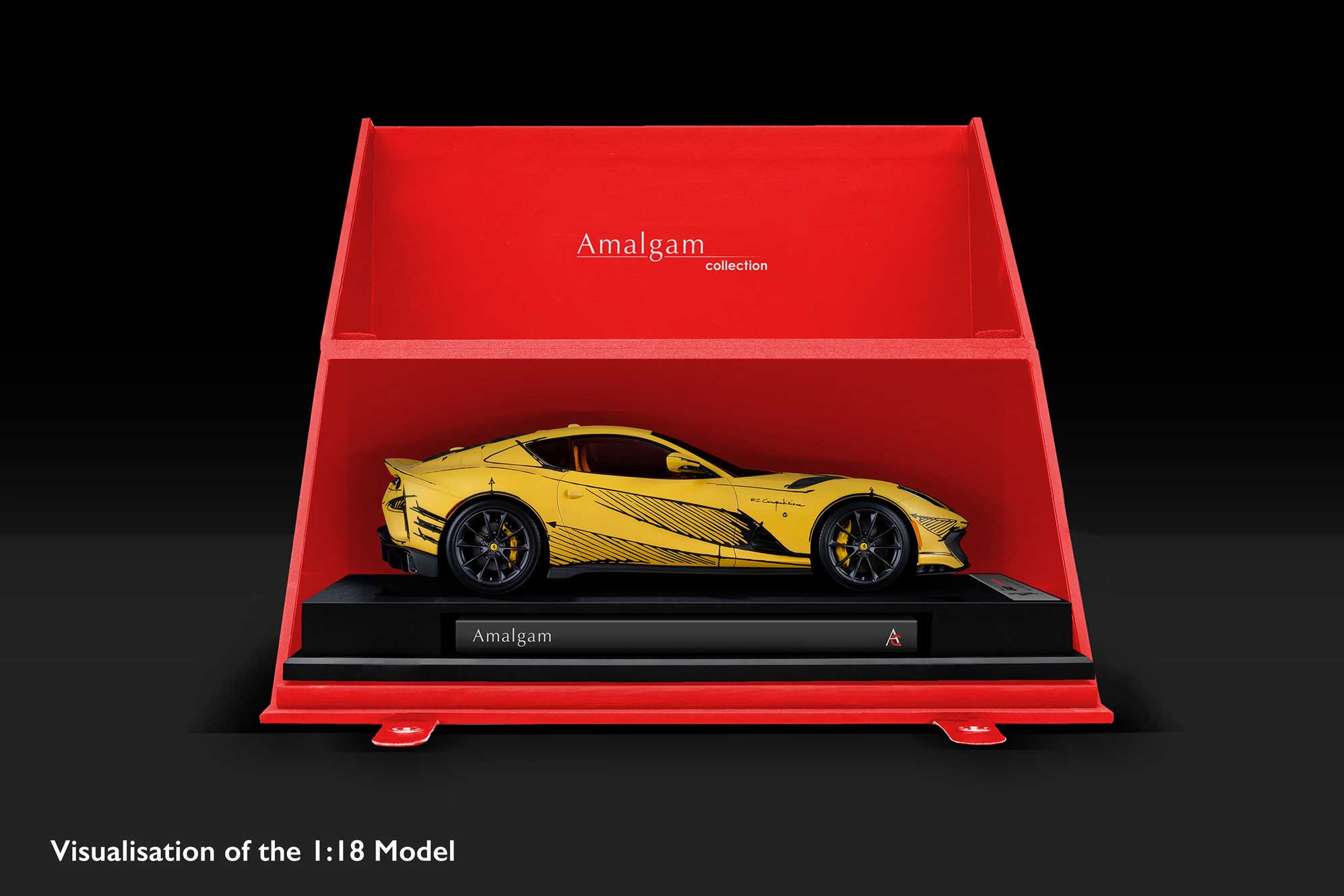 A nova Edição Limitada de 250 modelos em escala 1:18 segue os passos da criação pela Amalgam de um modelo único à escala 1:8 no ano passado, o qual foi por si doado, arrecadando uma quantia significativa para a Ferrari Foundation, ao lado do exemplar real arrematado.