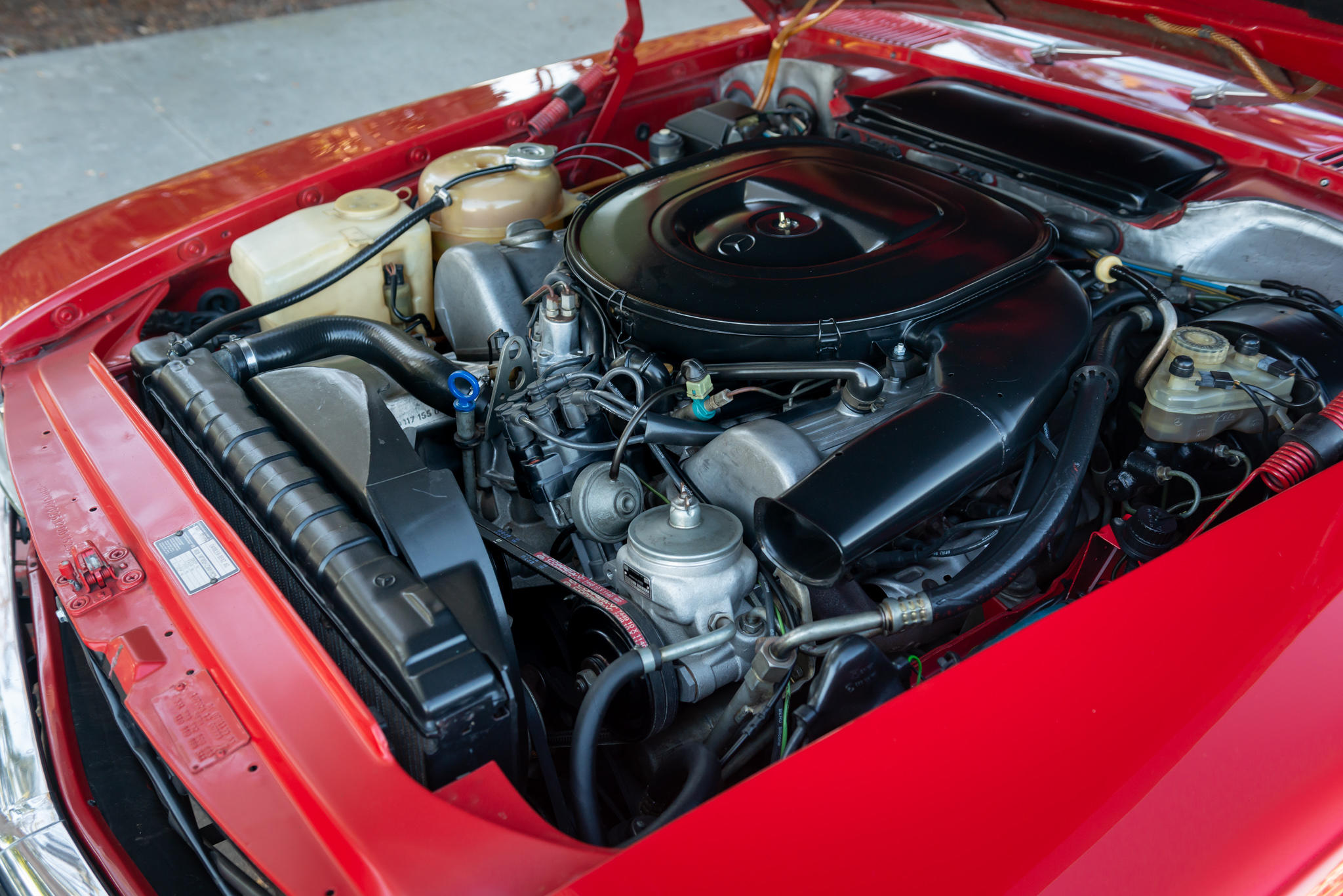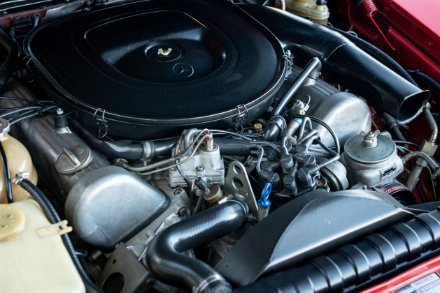 A nível mecânico, está equipado com o motor V8 M117, totalmente diferente dos restantes, construído em alumínio e com 5,0 litros de cilindrada, com uma potência de 240cv às 5000rpm. Acoplado ao motor está a caixa automática Type 722 de três velocidades, algo pouco comum para um automóvel de ralis.