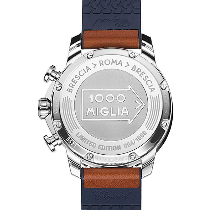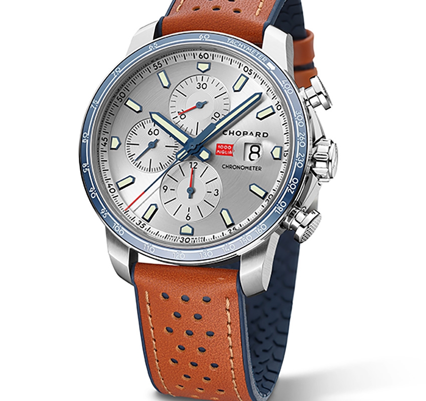 A emblemática colecção de relógios da Chopard aparece vestida de cinza e azul de forma a homenagear uma das mais prestigiada corridas de clássicos ,de estrada aberta. Os novos relógios de 44mm, em ouro rosa, com 18 quilates com versões disponíveis em aço inoxidável ou totalmente em aço.
