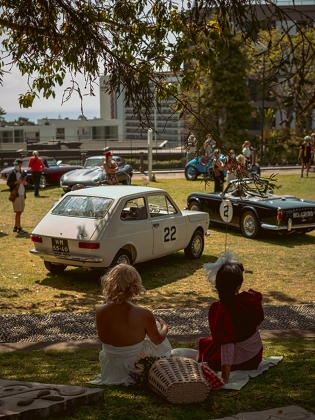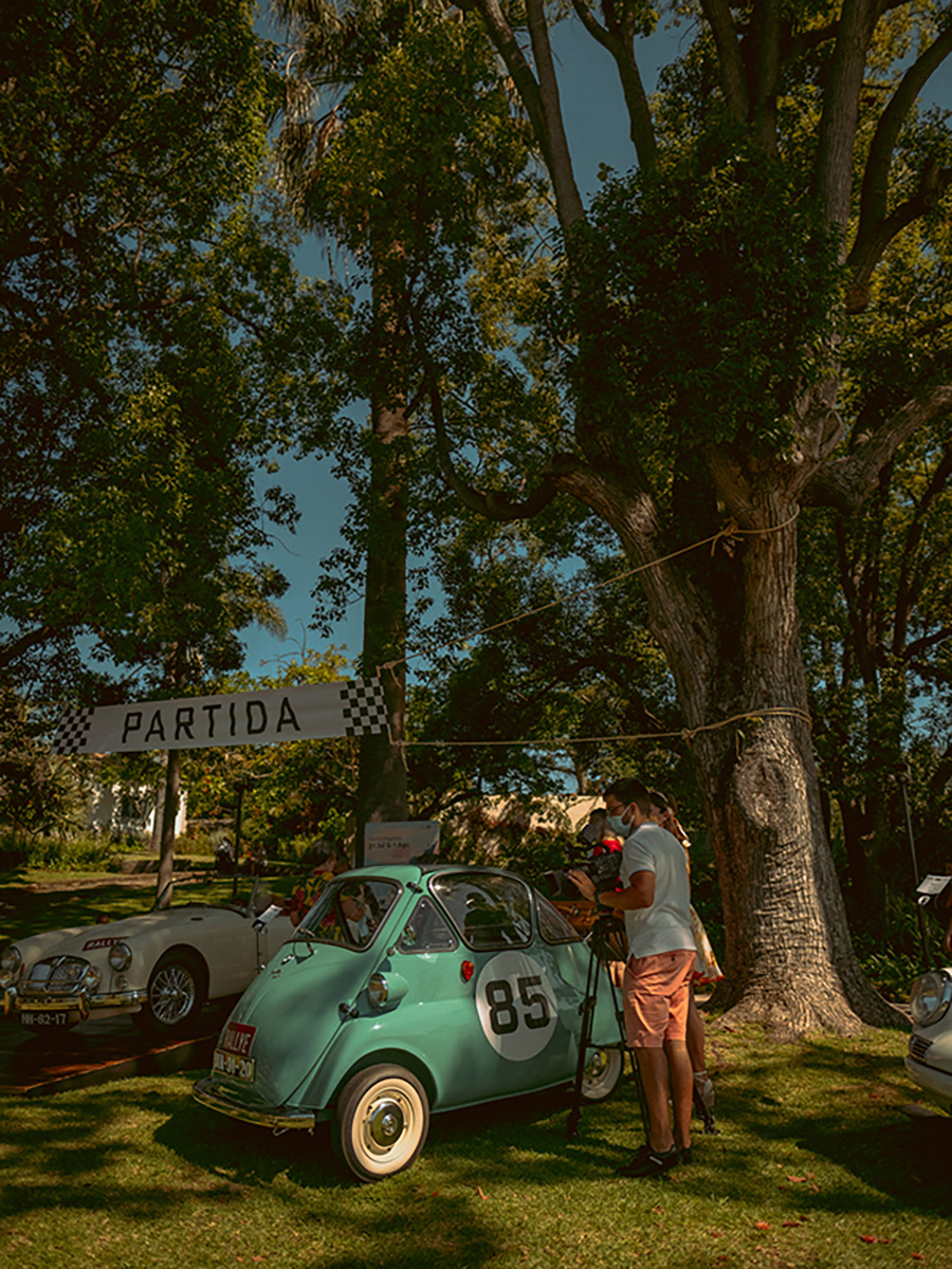 O facto de estar vestido para a ocasião, fez não só despertar a curiosidade dos visitantes e facilitar a interação, mas também ajudar-me a imergir na atmosfera tão específica de um evento de clássicos. Óbvio que ir de sapatilhas, calções desportivos e boné é mais confortável que aguentar 28 graus ao sol vestido como o Tommy Shelby dos Peaky Blinders. Mas todos os pequenos detalhes contam para construir uma atmosfera adequada, e este é um que tenho todo o gosto em contribuir, ainda que os meus pés me odeiem por isso.