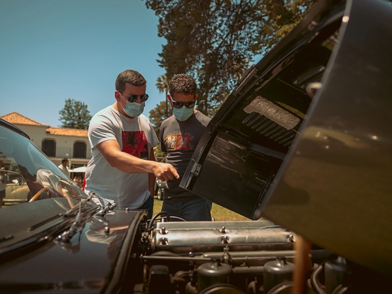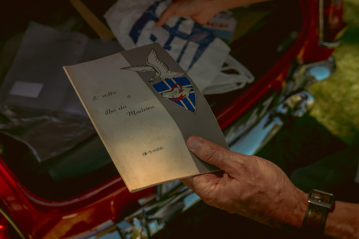 A grande circulação de visitantes, sempre respeitando as normas de segurança e distanciamento social, garantiu que nunca me faltasse ninguém para trocar umas palavras. A primeira conversa foi com António Martins, atual presidente do CACM (Clube Automóvel Clássico da Madeira). Grande entusiasta de automóveis, levou-me até junto do seu MG B ali exposto, abrindo a mala e partilhando comigo efusivamente registos e álbuns fotográficos do restauro completo levado a cabo no Reino Unido, elaborando todas as viagens e aventuras envolvidas no longo processo. Mostrou-me também alguns jornais dos anos 60, onde se pode comprovar o historial de competição em ralis nas ilhas. O António deu-me uma perspectiva muito interessante sobre a razão de existirem tão bons restauros e artesãos ligados aos clássicos na Ilha. Interessante e bastante óbvia: “A necessidade aguça o engenho”. Com a elevada dificuldade de obter peças de substituição, ou os valores proibitivos de transportar um veículo para o continente para ser restaurado, várias casas de restauro nasceram e especializaram-se organicamente, vindo a tornar-se referências internacionais. Além disso, como o acesso a importações era limitado, os automóveis em circulação eram mantidos excepecionalmente bem por períodos mais longos que o normal.