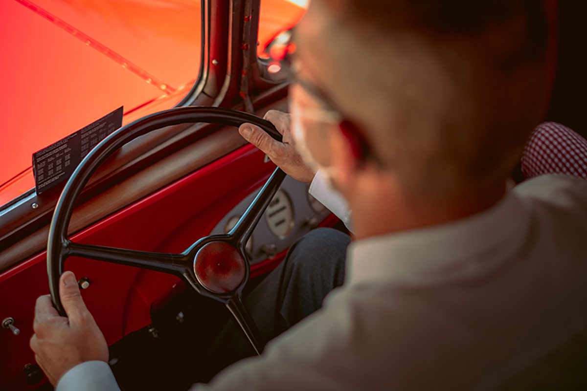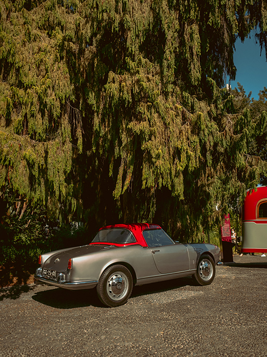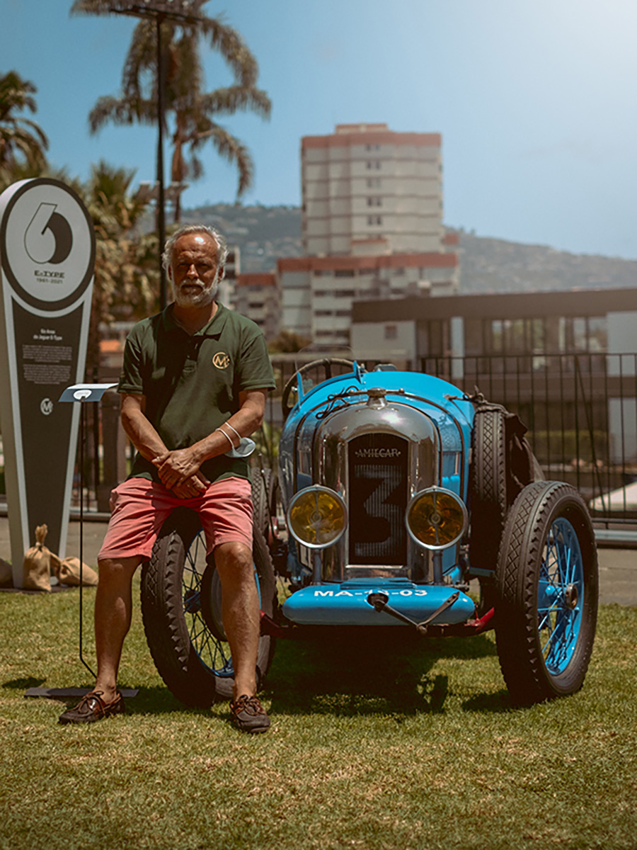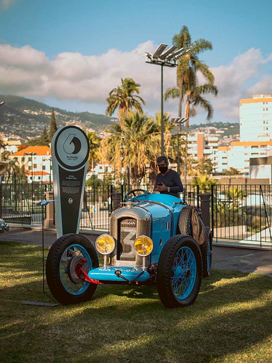 A conversa seguinte foi com Martim Velosa, reconhecido escultor e curador da exposição Clássicos na Magnólia, e proprietário do Amilcar, um dos pré-guerra de competição mais interessantes no relvado. Adjacente ao mesmo, o Jaguar E-Type de Ricardo Velosa, seu pai, provando que é uma paixão que já vem nos genes. O Martim partilhou comigo alguma da história do Rally – Volta à Madeira, hoje conhecido como Rali Vinho da Madeira, mantendo a sigla “RVM”. Algumas das dificuldades que os pilotos internacionais encontravam nas estradas madeirenses, e como isso ajudou alguns locais a ganharem especiais em viaturas bem menos potentes e, se calhar, não tão bem preparadas.