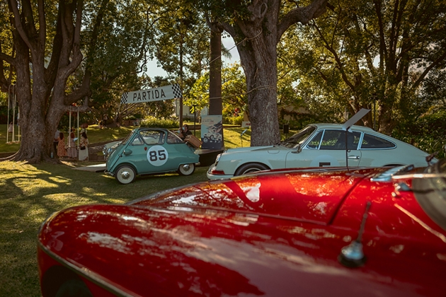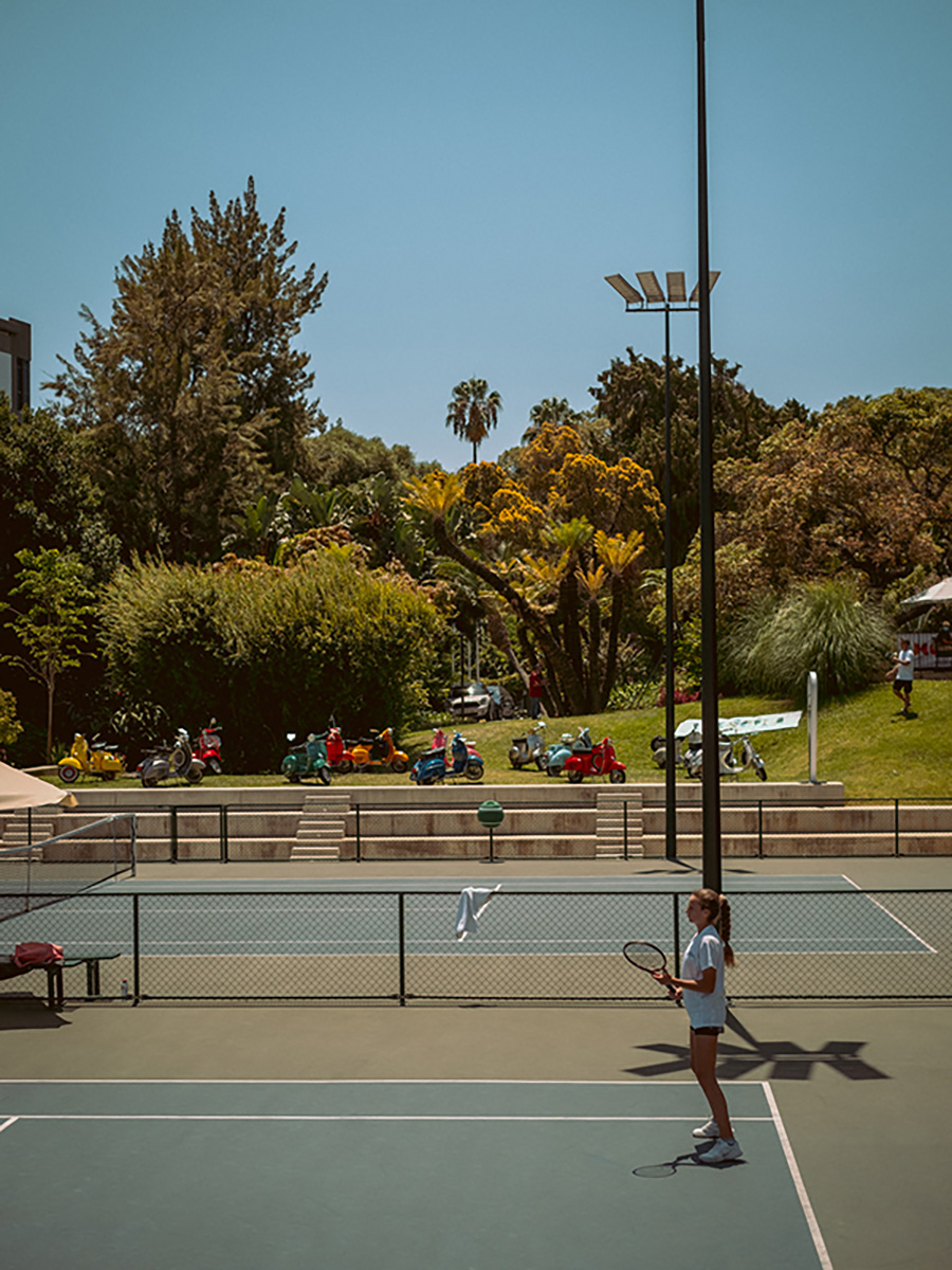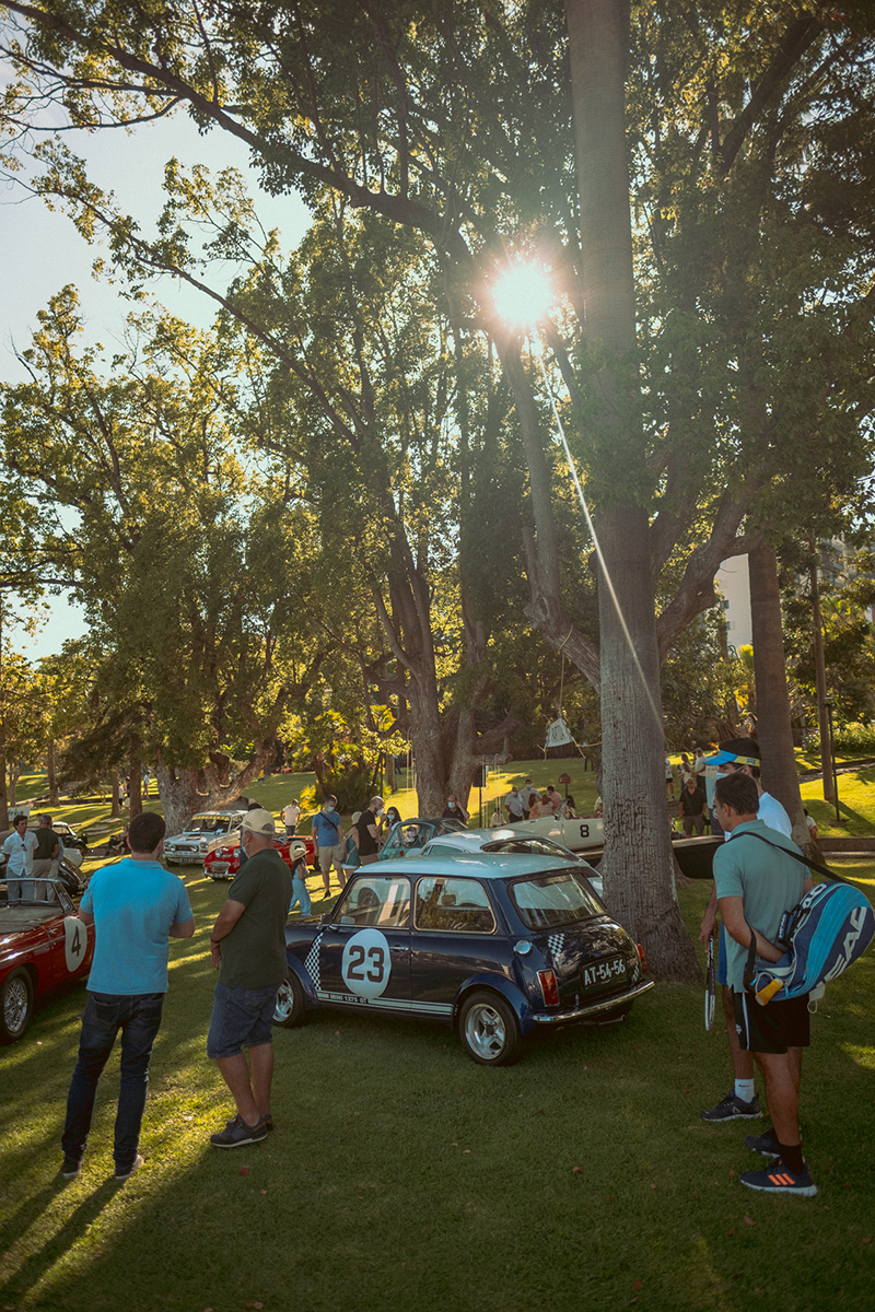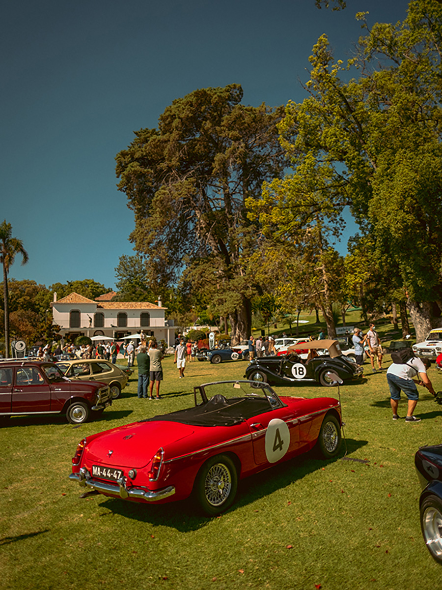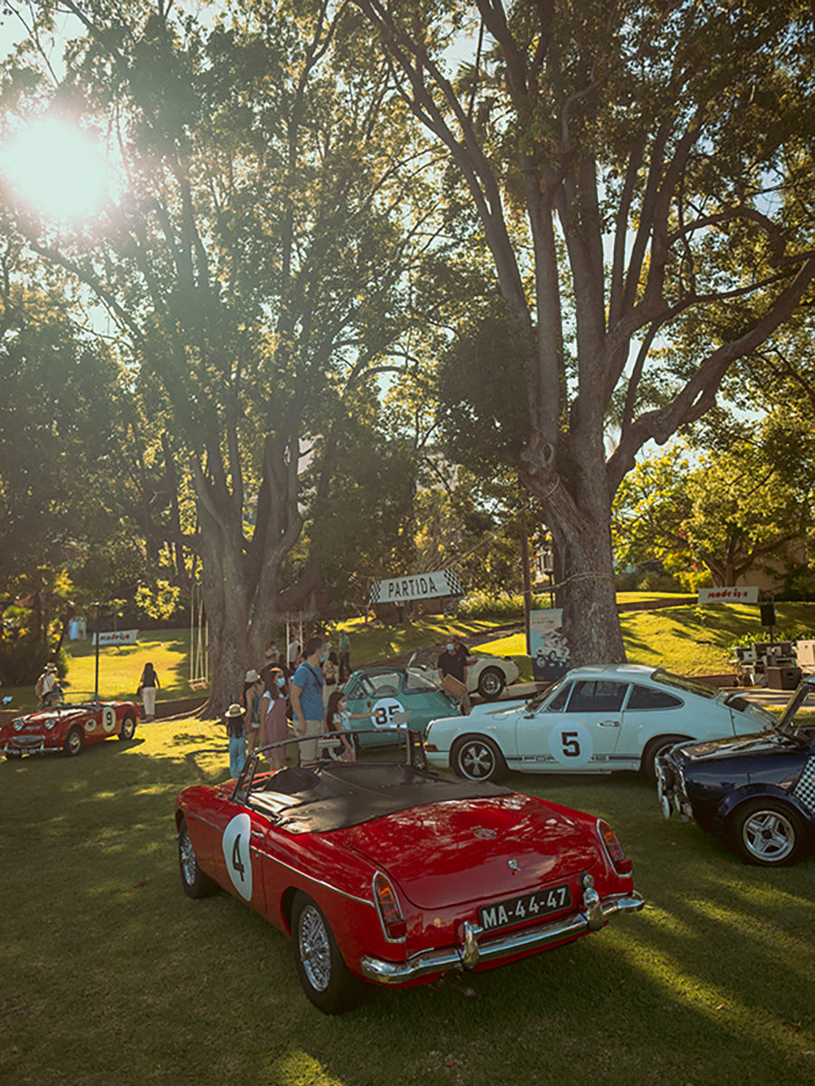 O restante dia de Sábado e posteriormente Domingo resumir-se-iam assim. Puramente a absorver a atmosfera, a trocar palavras com os participantes e proprietários, a observar os jogos de ténis e paddle a acontecer ali mesmo ao lado, e a começar a perceber que esta festa é melhor que a soma de todas as suas partes. O pôr do sol espreitava por entre as árvores, projetando longas sombras sobre os automóveis, acabando com um reflexo dourado no mar, contrastando os tons verdes e coloridos da flora do jardim. Era hora de terminar o dia. Um ponto positivo de fazer reportagens sozinho, é que posso abrandar o ritmo e planear o meu tempo sem preocupações de terceiros. E foi isso que fiz quando voltei ao hotel. O fim-de-tarde estava quente, solarengo, e tinha uma piscina inteira com água à temperatura ideal só para mim. Não nadei. Virei-me para o céu, abanei as pernas o mínimo possível mas o suficiente para me manter a flutuar, e assim fiquei durante 30 minutos. Assim, meramente a demolhar o corpo e as ideias para este texto.