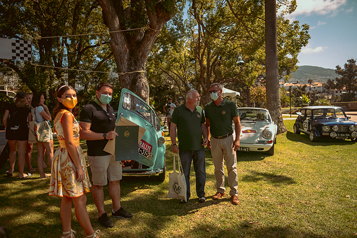 A primeira ordem do dia foi a atribuição dos certificados de participação aos cerca de 30 automóveis expostos, nas várias categorias presentes. Eduardo Jesus, excelente mestre de cerimónias, concedeu a todos os proprietários um generoso certificado assinado à mão. Entre eles exemplares historicamente distintos como o Norte-Americano Hudson Super Six de 1928 que serviu na praça de táxi no Funchal, oferecido pelo proprietário à Região Autónoma da Madeira. O Inglês MGB de 1965 com historial de ralis na Madeira e Açores, pertencente a António Martins, atual presidente do Clube de Automóveis Clássicos da Madeira. O Amilcar CGSE, carro de competição francês de 1926, propriedade de Martim Velosa, o curador do evento. O Triumph TR4 recentemente restaurado na ilha, propriedade de Eduardo Jesus, automóvel célebre por, em 1965, ter dado a primeira vitória do Rally – Volta à Madeira a um madeirense, Zeca Cunha. Contamos ainda com os mais exóticos Sovam Coupe Sport 1100A de 1967 e o BMW Isetta 300 “Bubble head” de 1957, todos eles heróis improváveis do RVM. No final da cerimónia, tive oportunidade de entrevistar informalmente Eduardo Jesus, numa agradável conversa onde partilhou comigo a história e relação da Madeira com os automóveis clássicos. Segundo me explicou, esta relação remonta a 1904, quando pela primeira vez circulou um veículo motorizado na ilha, um Wolseley de 10 cavalos, trazido por um estrangeiro que foi à ilha passar férias. Mais tarde em 1907, com a vinda dos primeiros autocarros de transporte de passageiros, essa relação fortaleceu-se com a população em geral. Com a formação do CACM (Clube de Automóveis Clássicos da Madeira) em 1987, deu-se um grande impulso à difusão desta cultura, levando muitos proprietários, pelo simples gosto, ligação emocional ou familiar, a adquiriram e a restaurarem os seus clássicos. Isto causou à organizado de exposições, ralis e mais recentemente o assinalável Madeira Classic Revival, juntando anualmente centenas de bólides provenientes de todos os cantos da ilha. Poderá ler com mais detalhe a entrevista com Eduardo Jesus na íntegra num futuro artigo do Jornal dos Clássicos.