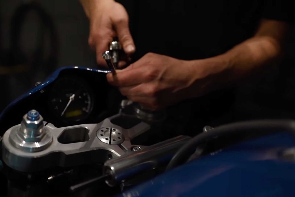 Criada pela especialista em customização deBolexEngineering, sediada em Londres, esta é uma das versões mais famosas, baseada na Ducati749S. Com inspiração no design de automóveis de corrida, motos e aviões clássicos, o tanque de combustível, a cauda e a “bellypan” foram feitas de forma artesanal, a partir de alumínio, e pintados de azul e cinzento.