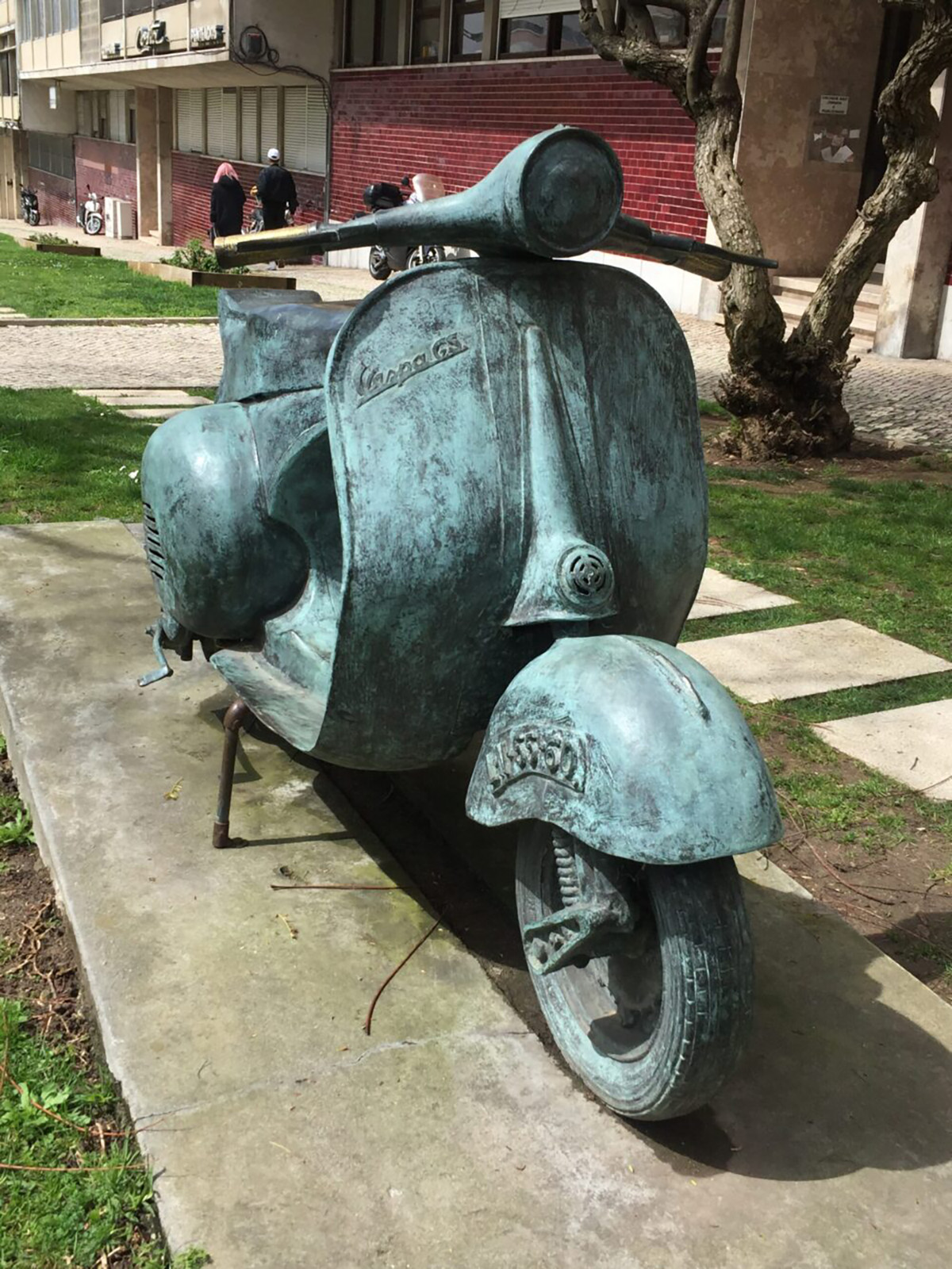 Quando a estátua da vespa foi colocada no local, em 2004 aquando do encontro mundial em Lisboa dos entusiastas destas motas, o seu peso forçou a que necessitasse da ajuda de um guindaste. Este é um dos motivos para a descrença de Rui Simões de que nenhum vizinho se tenha apercebido da retirada da estátua. “Não foi fácil tirar aquilo dali. Seriam precisos pelo menos quatro homens”, nota.