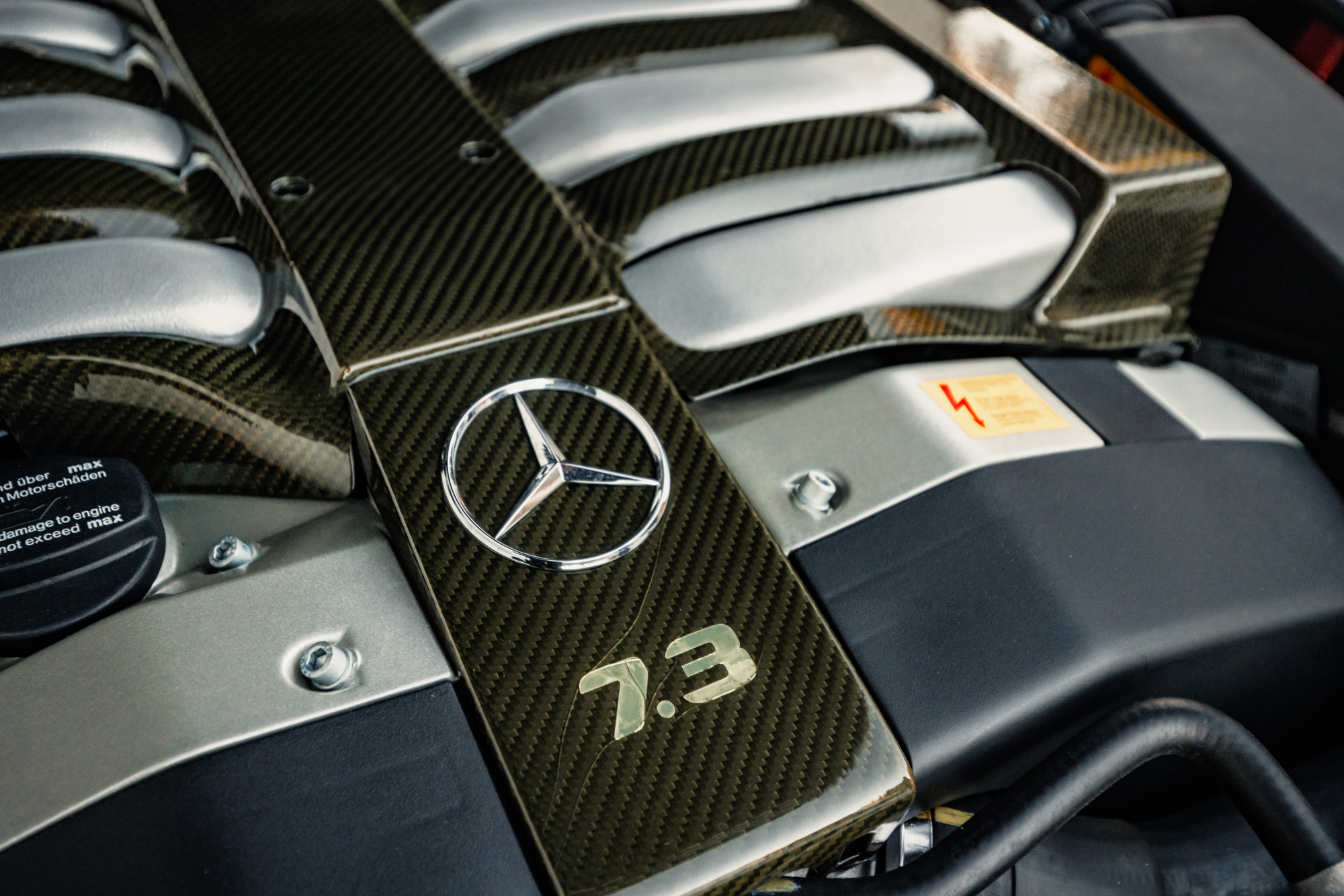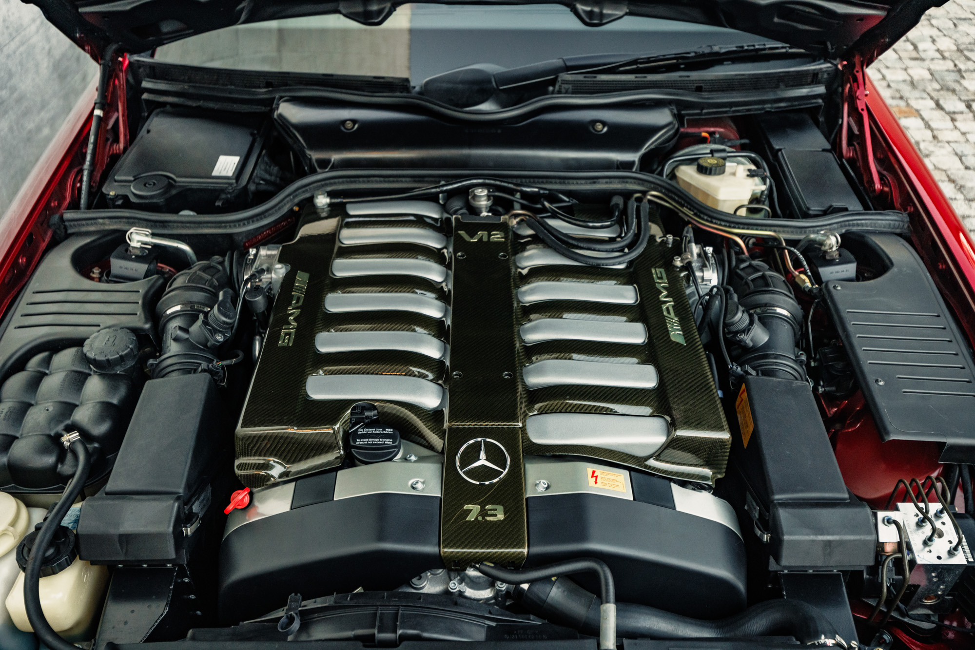 O coração do SL 73 AMG é o motor V12 M120 de 7,3L de cilindrada, com quatro válvulas por cilindro, duas árvores de cames em cada cabeça e injecção de combustível Bosch HFM, para um débito de 525cv às 5.500rpm e 750Nm de binário às 4.000rpm. Este mesmo motor equiparia também o já icónico Pagani Zonda.
