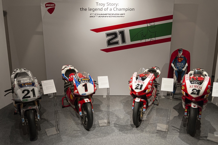 A exposição temporária “Troy Story: The Legend of a Champion” vai permanecer no Ducati Museu até 19 de setembro de 2021, com a única exceção nos dias 1 a 4 de julho, em que as motos serão exibidas em Modena na edição 2021 do Motor Valley Fest.