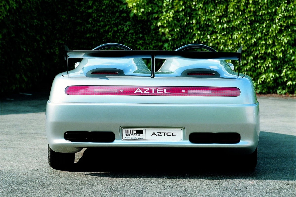 Para celebrar os 20 anos da Italdesign, Giorgetto Giugiaro desenhou e concebeu o Aztec para ser apresentado no Salão de Turim de 1988. Este desportivo de dois lugares foi construído a partir de um chassis de aço, com uma carroçaria produzida em alumínio, fibra de carbono e Kevlar. O interior em pele tem o condutor e passageiro separados, requerendo que ambos comuniquem electronicamente.