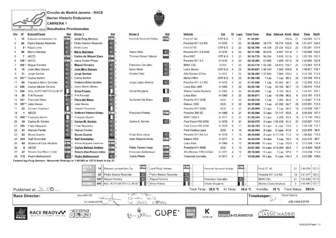 Já com o público a ocorrer em grande número ao histórico Circuito de Jarama, o primeiro dia do Jarama Classic foi abrilhantado com a primeira corrida do Iberian Historic Endurance. O pitoresco pelotão de quatro dezenas de viaturas que evocam outros tempos proporcionou um espectáculo de primeira linha, com mais de 40 clássicos em pista e equipas de 5 países diferentes.