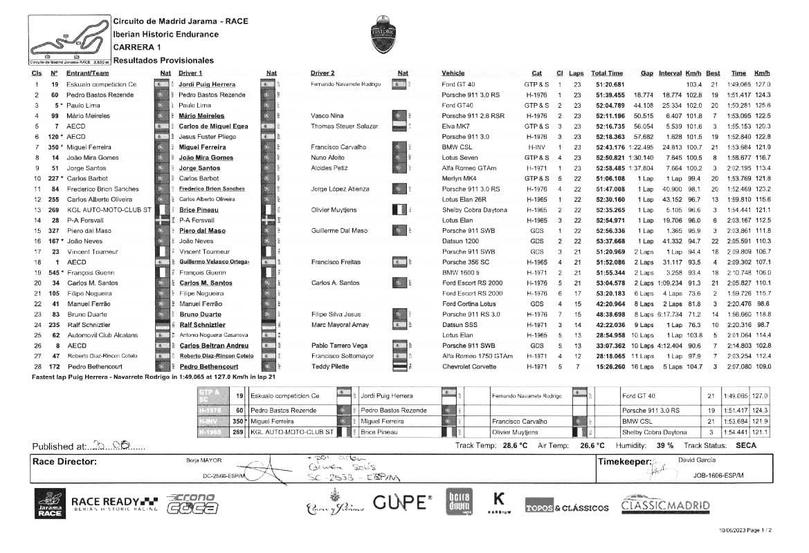 O Iberian Historic Endurance teve a sua primeira prova da temporada em Espanha no mítico Circuito de Jarama. Na grande festa que foi o regresso do Jarama Classic, Jordi Puig e Fernando Navarrete venceram as duas corridas disputadas, num evento que reuniu 21.000 espectadores no circuito de Madrid.