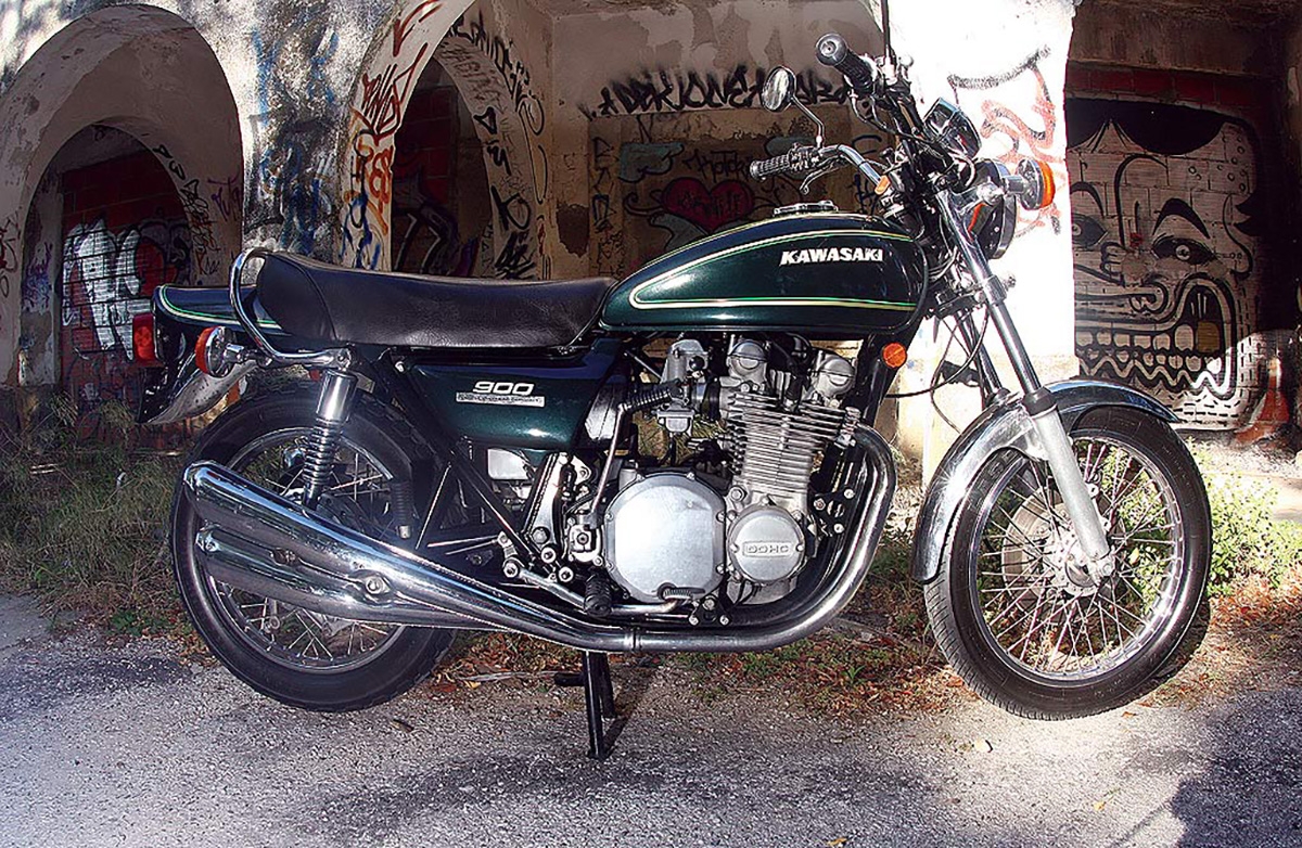 A Kawasaki começara já em 1967 a projectar uma 750 de quatro cilindros a quatro tempos para substituir a sua 650W, mas quando a Honda se adiantou à parada com a CB750, no Salão de Tóquio de 1968, foi altura de voltar à prancheta, utilizando a Honda como a bitola a melhorar. Assim, não surpreende que, quando a Kawasaki anunciou ao mundo a Z900 em 1972, esta tivesse substancialmente mais potência que a Honda: 82 cavalos contra os 67 da rival de 750cc. Estes eram conseguidos dos 903cc às 8500rpm com a ajuda do duplo veio de excêntricos à cabeça, que torna o motor das Z900 tão distinto e imediatamente reconhecível. Ao contrário da CB750, 200 Km/h eram uma possibilidade real, e o arranque aos 1000 metros bate um Porsche 911 do ano 2000! Se a CB750 foi o primeiro prego no caixão da indústria inglesa, a Z900 foi o empurrão final. Por comparação, a Norton da época, única inglesa que na sua versão final repartia a cilindrada da moto de Akashi, era pateticamente fraca e quebradiça, embora levasse uma vantagem em docilidade de condução.