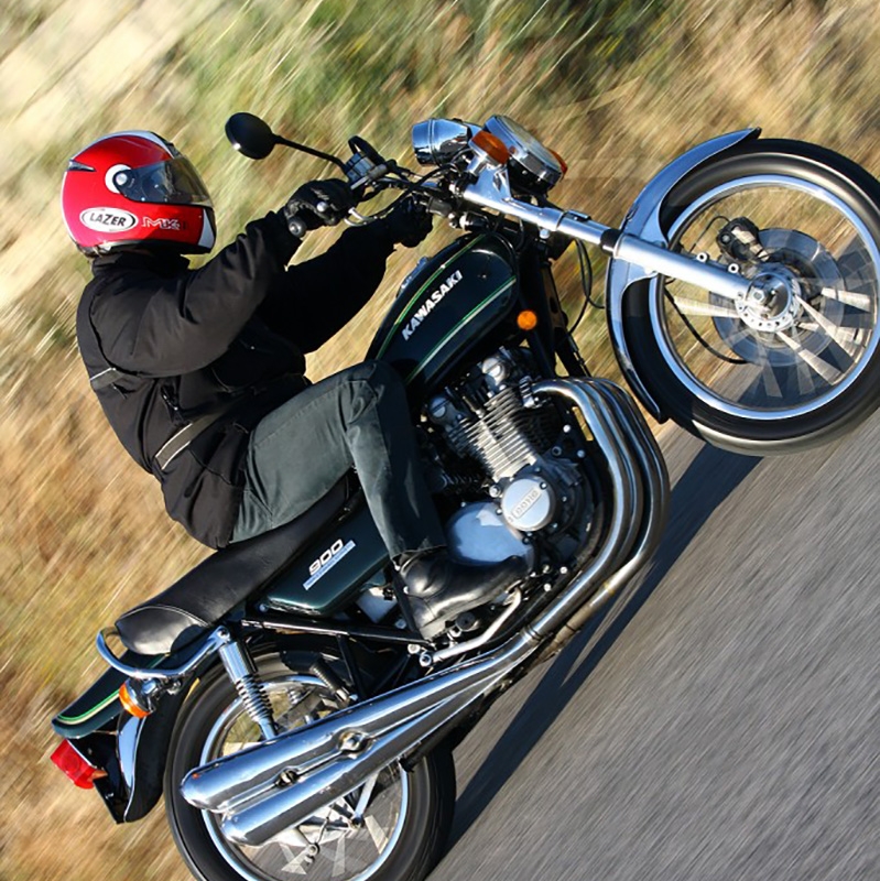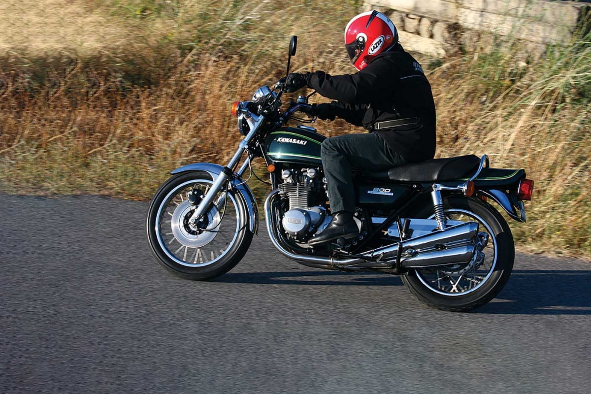 A suavidade e sensação de potência do motor são reais, com um binário respeitável de 7,46 quilos. De facto, a grande diferença para os propulsores de hoje é a velocidade a que as rotações sobem, a Z1 parece adormecida a dar a volta ao conta-rotações comparada com as suas “primas” de hoje – e o limite a que essas rotações podem ser levadas também é modesto, mas este menos óbvio se considerarmos que ainda hoje 6000 é considerado bom para um carro. Confortáveis no amplo selim acolchoado e expostos ao vento até à velocidade máxima teórica da mais de 217 km/h pela posição de condução muito direita, esta moto era suficientemente boa para permitir raspar os escapes ao curvar. Outra modificação vulgar na altura, normalmente imposta pela adopção de sistemas de escape alternativos, era a remoção do descanso central, com uma poupança instantânea de alguns 9 quilos mas dores de cabeça para a geração de restauradores mais adiante, pois estes perdiam-se invariavelmente em cantos escuros de oficinas e muito terão acabado por ser deitados fora. Surpreendentemente para um tão grande cilindrada e tecto de rotação possível da ordem das 9000 rpm, os consumos são razoáveis, por volta dos 8 litros. Em manobras a baixa velocidade, sente-se o peso, mas a Kawasaki Z900 nunca foi apresentada como moto de cidade… Os prémios que ganhou um pouco por todo o mundo, do género “rainha da estrada”, demonstravam o seu domínio, pelo menos e sem margem para dúvidas, das épocas entre 1972 e 1976 – quando foi substituída por outra Kawasaki, a Z1000.