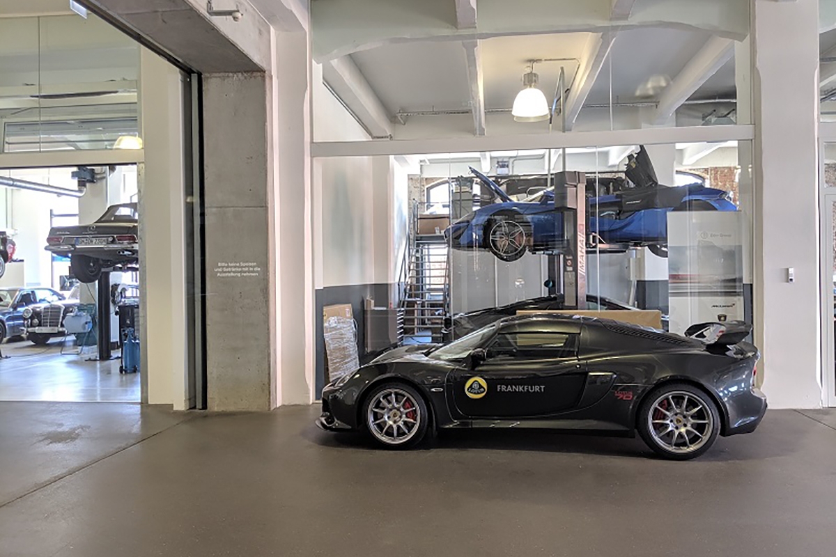 As marcas presentes no edifício são a McLaren, a Lamborghini, a Bugatti e a Alpine, ou seja, marcas de nicho e icónicas. Existe também uma empresa especialista em restauros de automóveis Mercedes-Benz. Tem ainda vários stands especializados em automóveis clássicos, como a Pyritz. Os coleccionadores que guardam os seus automóveis no interior, não têm que se preocupar com os visitantes, já que só é possível ver os automóveis através de janelas de vidro. No total são cerca de 350 automóveis presentes no local.