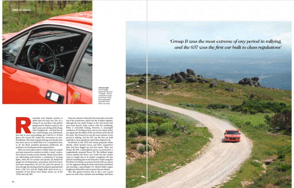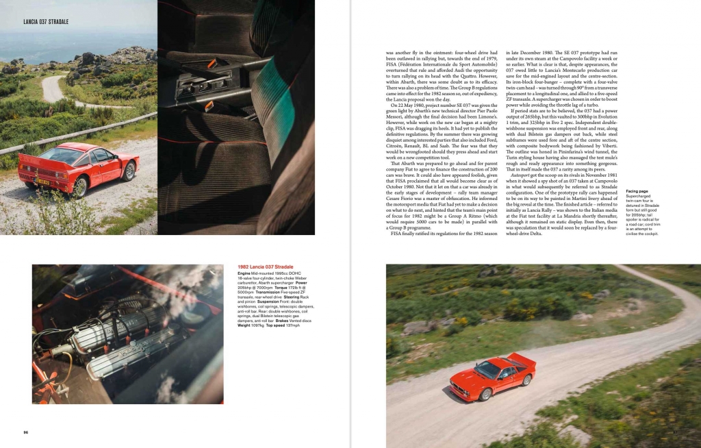 Nascido com a difícil tarefa de substituir o Stratos, o míssil balístico com motor Ferrari que conquistou três campeonatos mundiais de ralis, o 037 foi desenvolvido em conjunto com a Abarth, com a Pininfarina e com a Dallara, com a Lancia a criar assim um verdadeiro monstro de ralis, com motor central, sobrealimentação e tracção traseira – o primeiro carro construído de acordo com os regulamentos do Grupo B.
