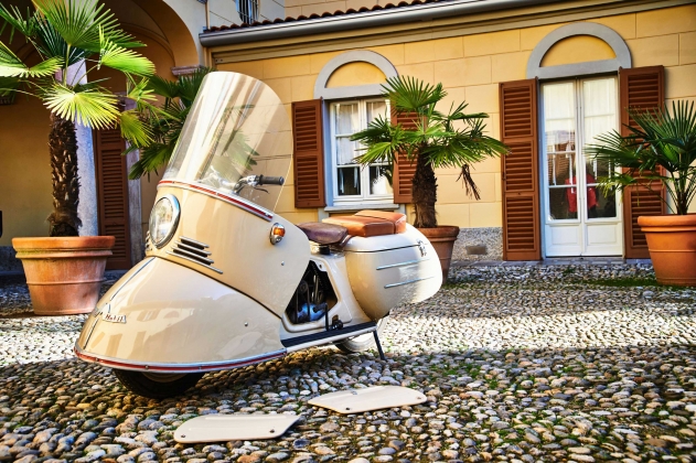 Apesar de ser muito conhecida pelas suas motos de motocross, existe um outro modelo icónico da marca alemã, a Maico Mobile. Produzida entre 1950 e 1958, esta moto era vendida como sendo “o automóvel em duas rodas”, muito por culpa do seu desenho e os painéis que protegem o seu condutor dos elementos da natureza.