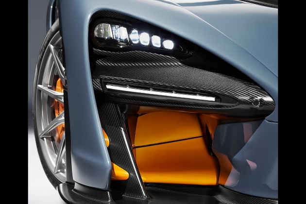 A sua aparência agressiva evidencia a filosofia de design da marca de que a “forma segue a função”. Com o motor montado na posição central traseira e uma aerodinâmica extremamente cuidada, o Senna consegue gerar até 800 quilos de sustentação negativa, uma estreia para um automóvel de estrada. O painel de instrumentos é descrito como “essencial” e os bancos são de uma peça só, construídos em fibra de carbono, assim como o monocoque e a carroçaria, fazendo deste o McLaren mais leve desde o F1.