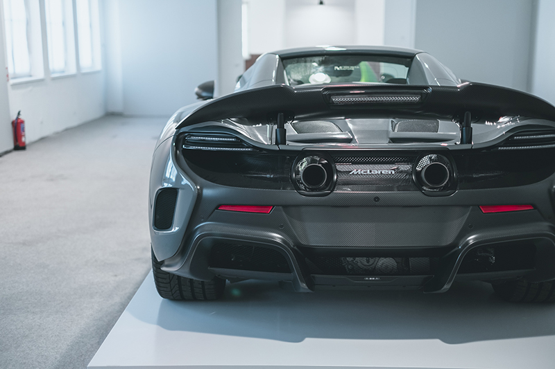 A nova carroçaria, também em fibra de carbono, minimiza o peso e optimiza a aerodinâmica, com a adopção de um novo deflector dianteiro e a secção traseira com um novo desenho. Ambas contribuem para o aumento significativo do nível de downforce, na ordem dos 40%, a partir do já eficaz 650S.