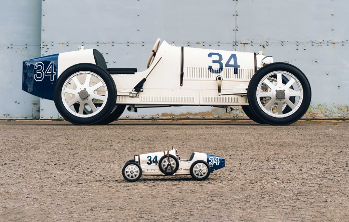 O Bugatti Baby II foi construído em parceria com a famosa marca francesa e é um tributo contemporâneo, à escala de 75%, à obra-prima original Type 35 de Ettore Bugatti de 1926. O veículo totalmente eléctrico foi desenvolvido pela The Little Car Company em parceria com a Bugatti para celebrar o 110º aniversário da marca icónica, preservando a história da Bugatti e, simultaneamente, incentivando uma nova geração de entusiastas. Tal como o próprio Bugatti Baby II, o modelo à escala é cuidadosamente montado com mais de 930 peças, replicando na perfeição os deslumbrantes detalhes intrincados do Bugatti Type 35.