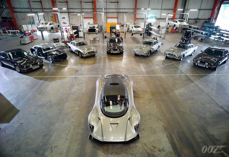 O modelo mais icónico, o DB5, irá voltar, após ter sido utilizado pela primeira vez há 55 anos no filme Goldfinger, seguindo-se o GoldenEye de 1995, Casino Royale em 2006, em Skyfall de 2012 e no Spectre de 2015. O DB5 está equipado com um motor de seis cilindros em linha e 4.0 litros, com duas árvores de cames à cabeça, produzindo cerca de 286 cv.