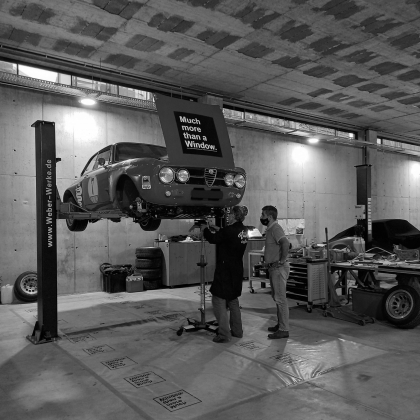 Entre um Matra Simca Bagheera em estado profundo de degradação (haverá algum que não esteja?) e os múltiplos Alfa Romeo na porção sudeste da oficina, o destaque evidente vai para um 1750 Mk1 de origem nacional, futura réplica de um GTAm, um dos focos actuais de trabalho da oficina. Com total inspiração no reduzidíssimo número de exemplares produzidos pela AutoDelta há época, o motor de dois litros, um “colaça estreita”, e um número avultado de componentes originais, o objectivo passará pela homologação para provas de velocidade.