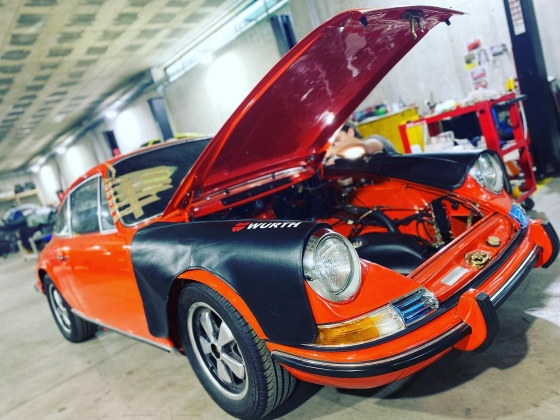 A par e passo com os E-Type, os Porsche 356, do qual encontramos diversos exemplares pelo espaço, não escondem segredos para a Otiima Custom. De entre os vários, destacam-se um exemplar em que orgulhosamente se comprova a patine e uma interpretação outlaw, presença em provas de Velocidade em Jarama e noutros circuitos de renome no sul da Europa. A presença Porsche é completa com um 924 e um 944, ambos em considerável estado de conservação.