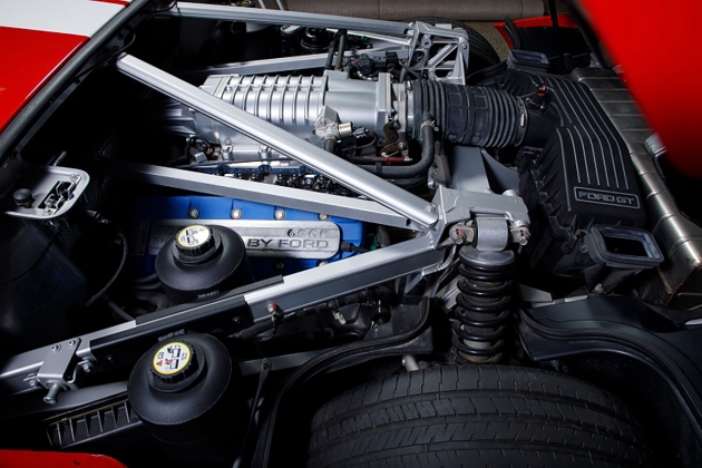 O Ford GT está equipado com um motor Ford Modular V8, de 5,4 litros de cilindrada, duas árvores de cames em cada cabeça, 32 válvulas e com um compressor volumétrico Eaton 2300 Lysholm, montado numa posição central do automóvel. O motor desenvolve uma potência de 558cv às 6.500rpm e um binário de 678Nm às 4.500rpm. Acoplado ao motor está uma caixa manual de seis velocidades da Ricardo.