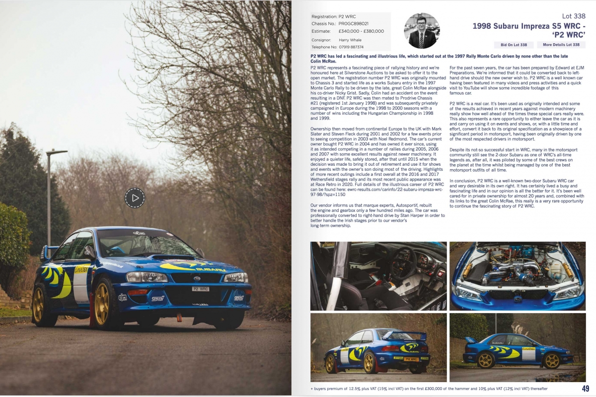 Se ao Subaru Impreza WRC adicionarmos os ingredientes Colin McRae e Rali de Monte Carlo fica a cereja no topo do bolo, como é o caso do exemplar presente neste artigo. Este Impreza WRC com o chassis número 98021 e com a icónica matrícula P2 WRC foi utilizado por Colin McRae e Nicky Grist no Rali Monte Carlo de 1997 que, devido a um acidente, não terminaram a prova.