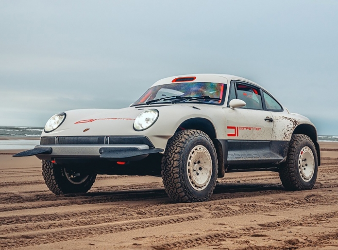Com base num Porsche 911 da geração 964 de 1990, a Singer inspirou-se nos saudosos Porsche 953 e 959 que competiram no Dakar, elevando a altura ao solo, além de aplicar jantes forjadas de 16” com pneus BF Goodrich K02 de todo-o-terreno e umas generosas protecções laterais com a inscrição Porsche. Na traseira podemos encontrar um spoiler integrado no desenho da carroçaria, algo inspirado no 959. Os painéis da carroçaria são em fibra de carbono e foram desenhados para a sua fácil reparação e substituição. Tudo foi elaborado com a colaboração do britânico Richard Tuthill, especialista em 911 de rali.