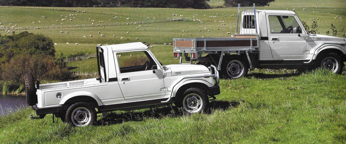 Com base na versão longa do Samurai, existem quatro versões disponíveis de carroçaria, tendo uma capacidade de carga de 500 kg. As quatro versões são o Farm Worker Versatile, equipado com bancos traseiros e tecto de lona, o Farm Worker Multi-purpose, equipado com caixa aberta que poderia vir com armação para transporte de animais, o Farm Worker Wellside, equipado com tejadilho em fibra de vidro e caixa de carga, e o Farm Worker Flatdeck, equipado com tejadilho em fibra de vidro e caixa de carga em madeira, este último era construído em exclusivo na Nova Zelândia pela Smiths. De origem vinha equipado com pneus Maxxis Trepador e como extra poderia vir com rádio CD da Sony.