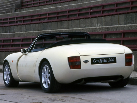 O nome Griffith provém de um modelo lançado em 1964, sendo que em alguns mercados o nome Griffith era mesmo a marca. Em 1991 a TVR, já nas mãos de Peter Wheeler, decide reavivar de novo o nome Griffith com um novo desportivo de dois lugares, descapotável e de baixo peso, com apenas 1.060kg, muito devido à carroçaria construída em fibra de vidro assente no chassis tubular derivado do Tuscan Racer, conjugado com uma distribuição de peso quase perfeita de 51/49, para a frente e traseira, respectivamente.
