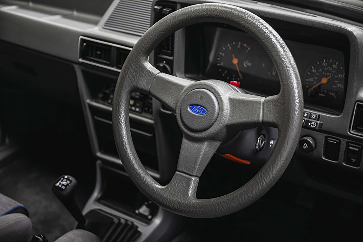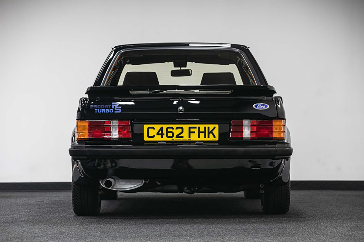 Praticamente todos os Escort RS Turbo S1 foram pintados na cor Diamond White, com algumas excepções, como os três exemplares muitos especiais pintados de Jet Black destinados à família Real, sendo o mais especial o exemplar presente neste artigo.
