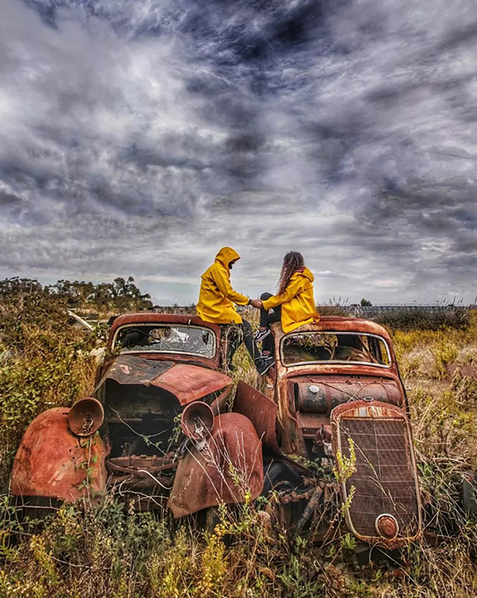 Ivy e Athon, ambos com formação superior em fotografia e design, já fotografavam lugares idênticos antes de se conhecerem e juntos decidiram criar um novo e aliciante projecto. E agora, sempre com os casacos amarelos vestidos, o casal explora, retrata e documenta a passagem do tempo nos mais diversos locais.