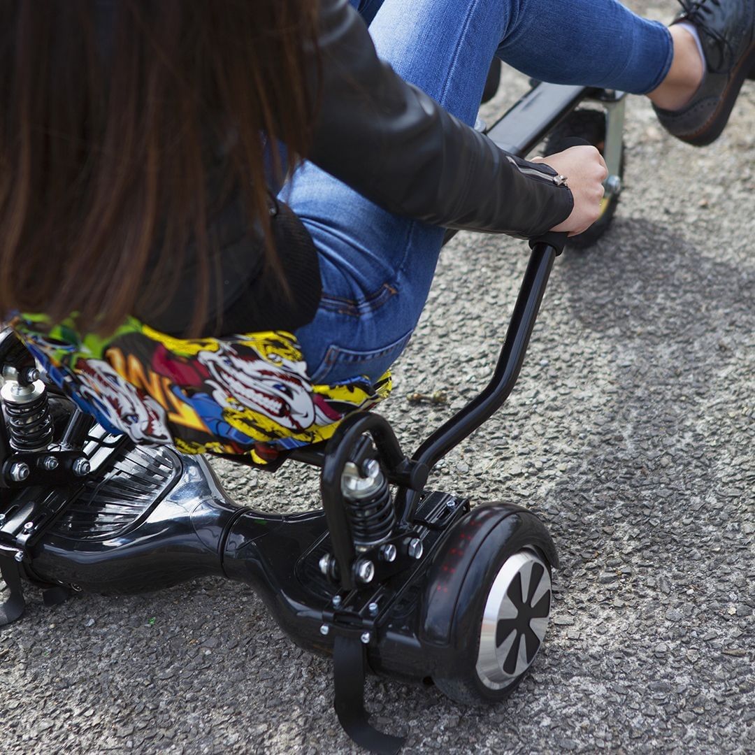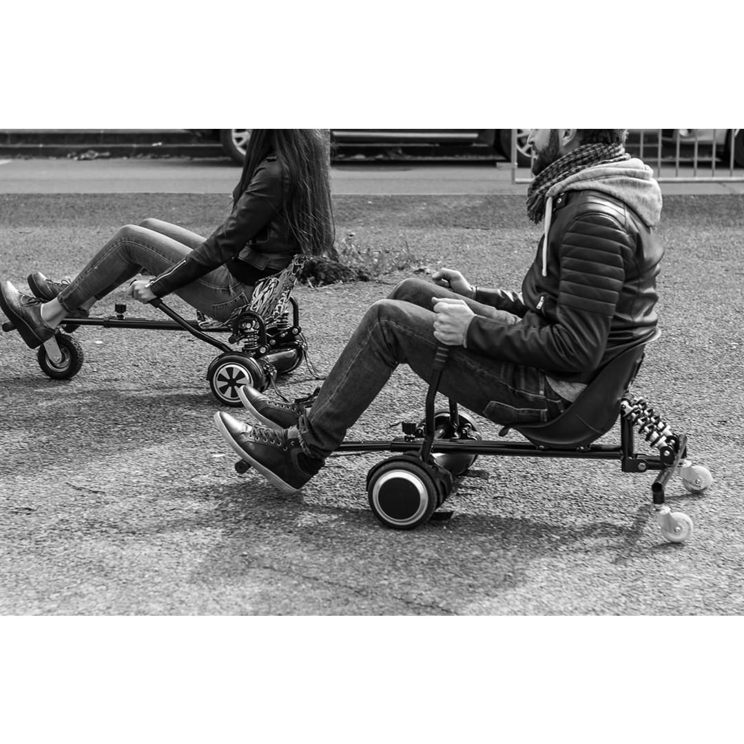 O Kart Pilot Black é um equipamento que se fixa ao hoverboard para transformar este dispositivo num HoverKart, permitindo tirar todo o poder de mobilidade do hoverboard para conduzir sentado como se fosse um kart.