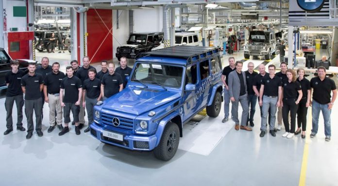 O veículo comemorativo saiu das linhas de produção das instalações da Magna Steyr, em Graz, na Áustria – um G500 pintado em azul e com acabamentos no interior em couro preto com costuras brancas em contraste.