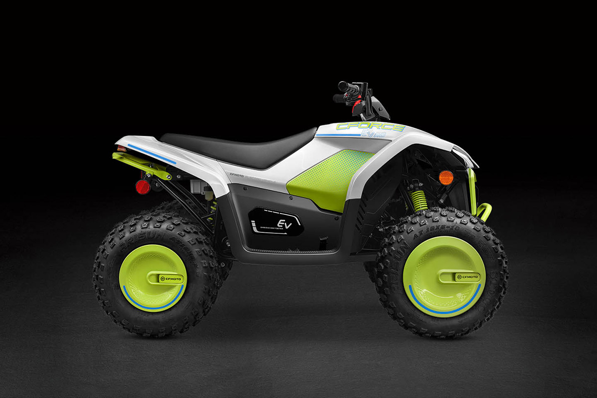 Quanto ao CFORCE EV 110 será equipado com baterias de iões de lítio com 44 V de tensão e carga de 53 Ah. Baterias que alimentarão motor de capaz de fornecer potência máxima de 4,5 kW e um binário de 40 Nm, transmitidos às rodas traseiras através de corrente.