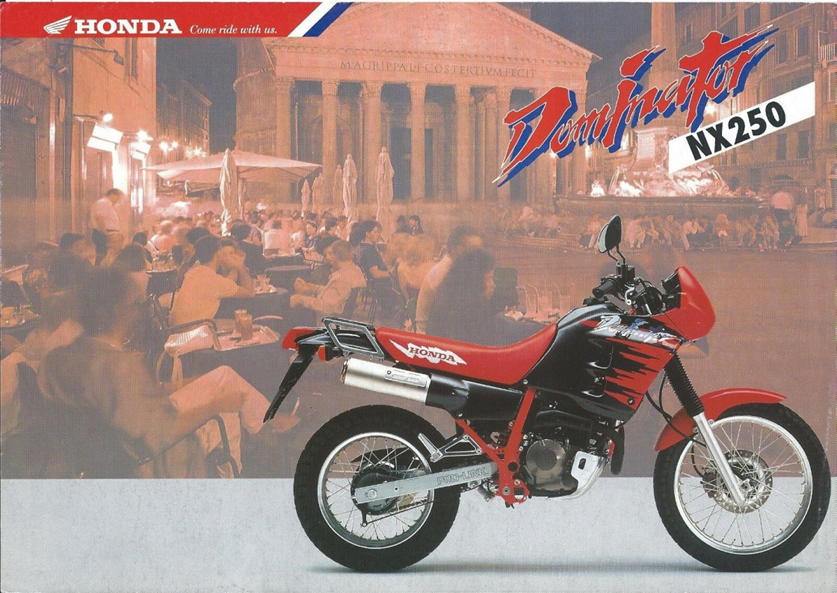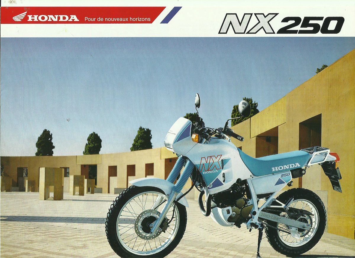 Era uma espécie de “Irmã do meio” entre a pequena NX 125 (Transcity) ou a gigante NX 650 Dominator. Curiosamente, a 250, desde o início da sua comercialização, sempre veio com motor de arranque (algo que não aconteceu na fase inicial da 650) e os japoneses não se limitaram a “aproveitar” o motor da XR 250. Foram as 3 lançadas na mesma altura, mas foi a 650 que esteve mais tempo no mercado, chegando a ser produzida até ao início deste século.