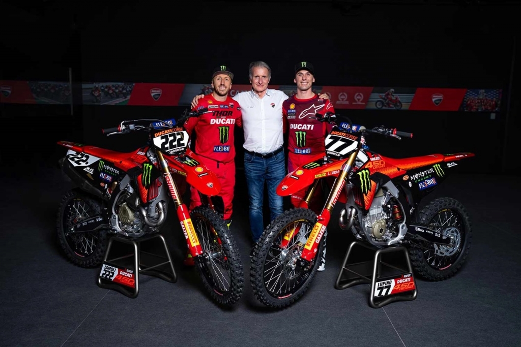 A Ducati revelou um pouco mais sobre a sua novíssima Desmo450 MX, protótipo que será pilotado pelo pluricampeão Antonio Cairoli (#222) e Alessandro Lupino (#77) em 2024, no campeonato italiano de motocross.