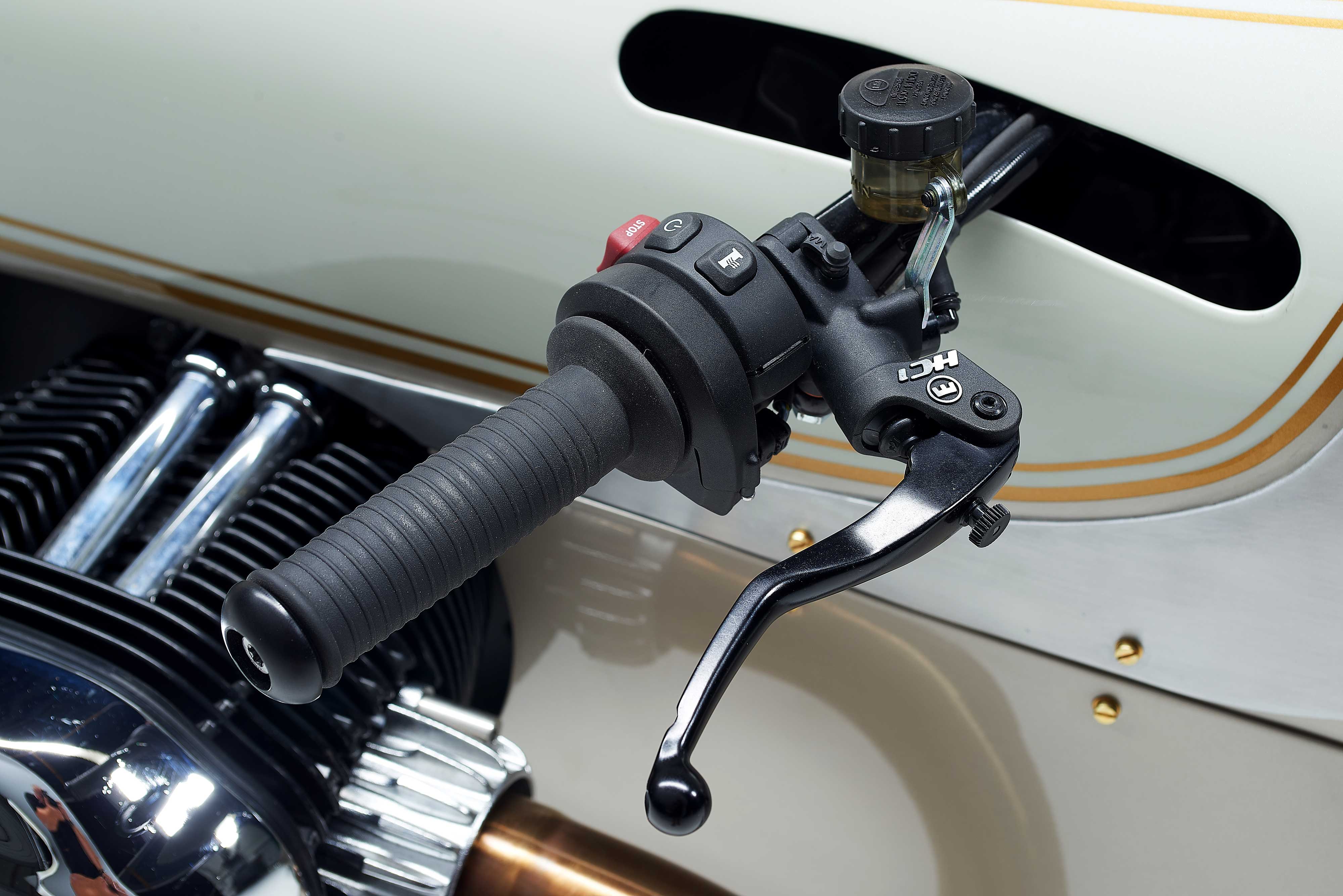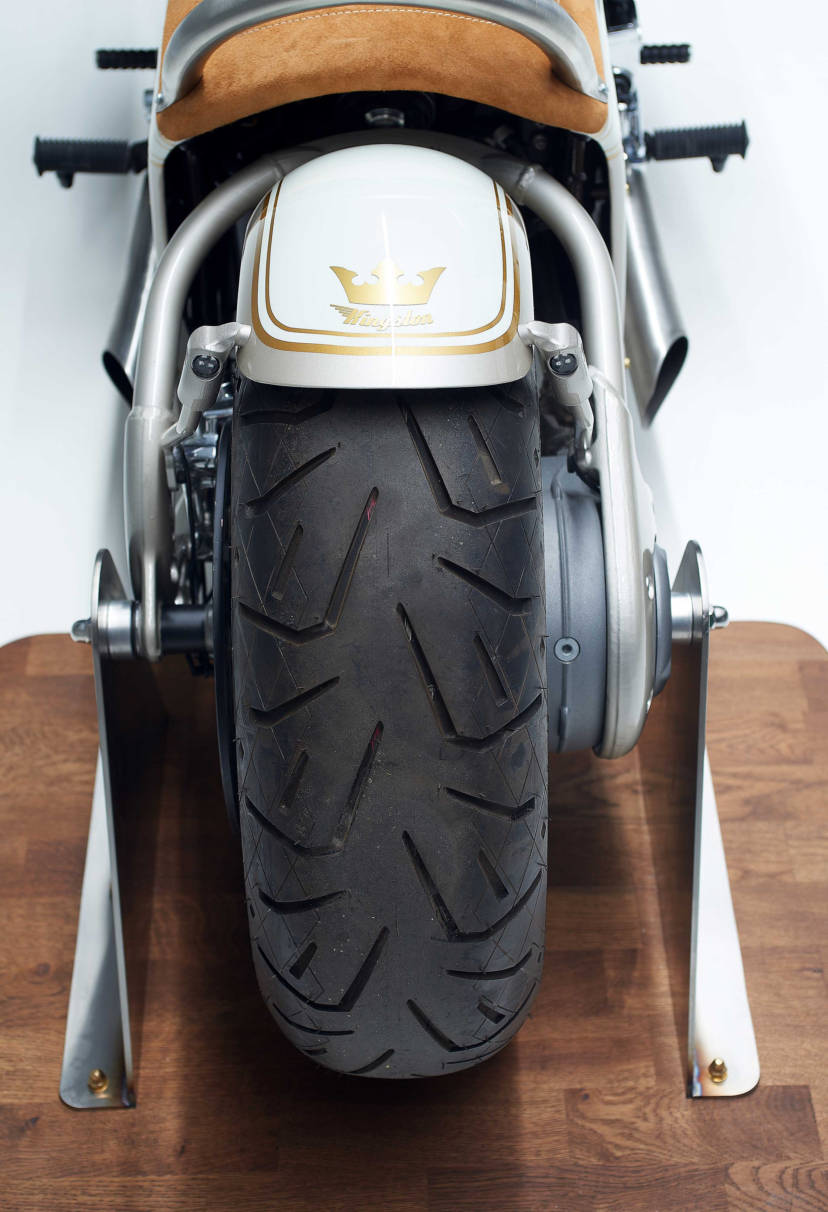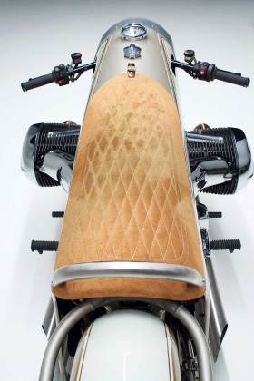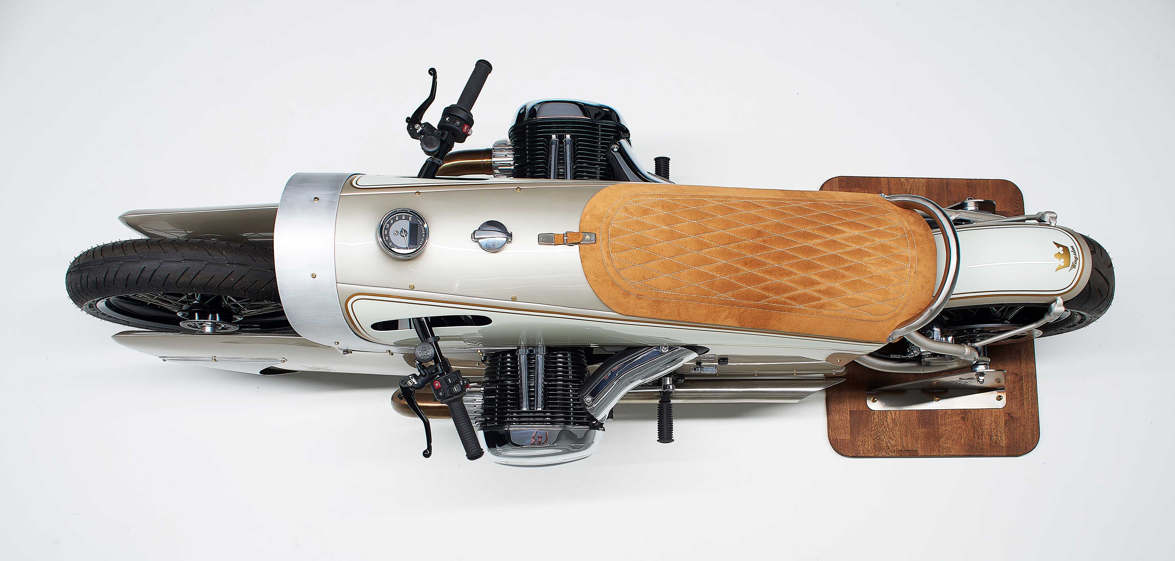 Enquanto isso, o depósito de combustível de oito litros é feito de chapa de alumínio de dois milímetros de espessura. Cada painel foi cortado, dobrado e transformado à mão para criar a forma minimalista, e o banco em alumínio foi estofado em couro genuíno.