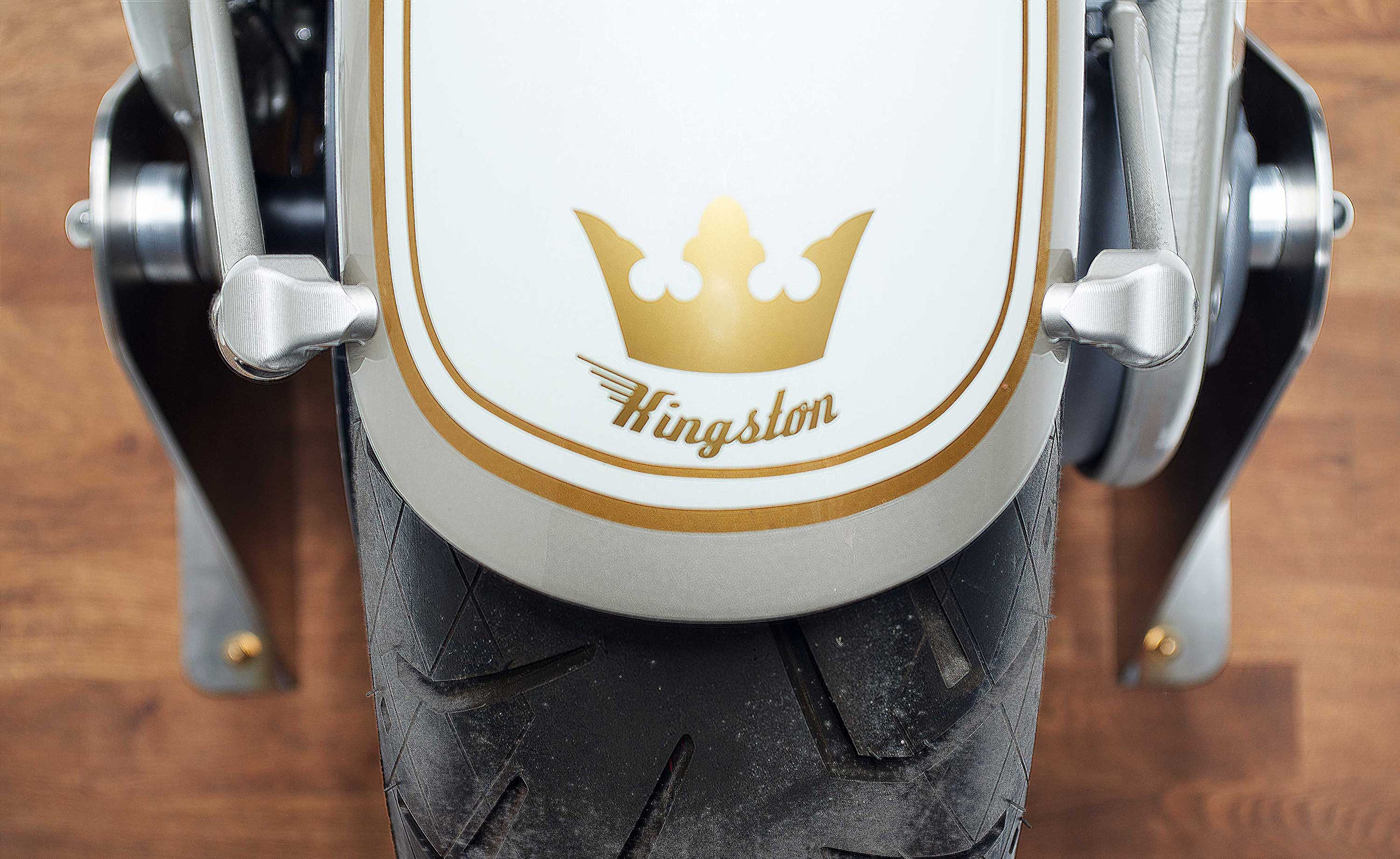 “Comecei com uma nova BMW R18, que depois desmontei”, disse King. “Como sempre, trabalhei com esferovite e papelão para criar a forma, as linhas e o desenho. O objetivo era que parecesse poderosa, elegante e rápida, combinando um visual inovador.”