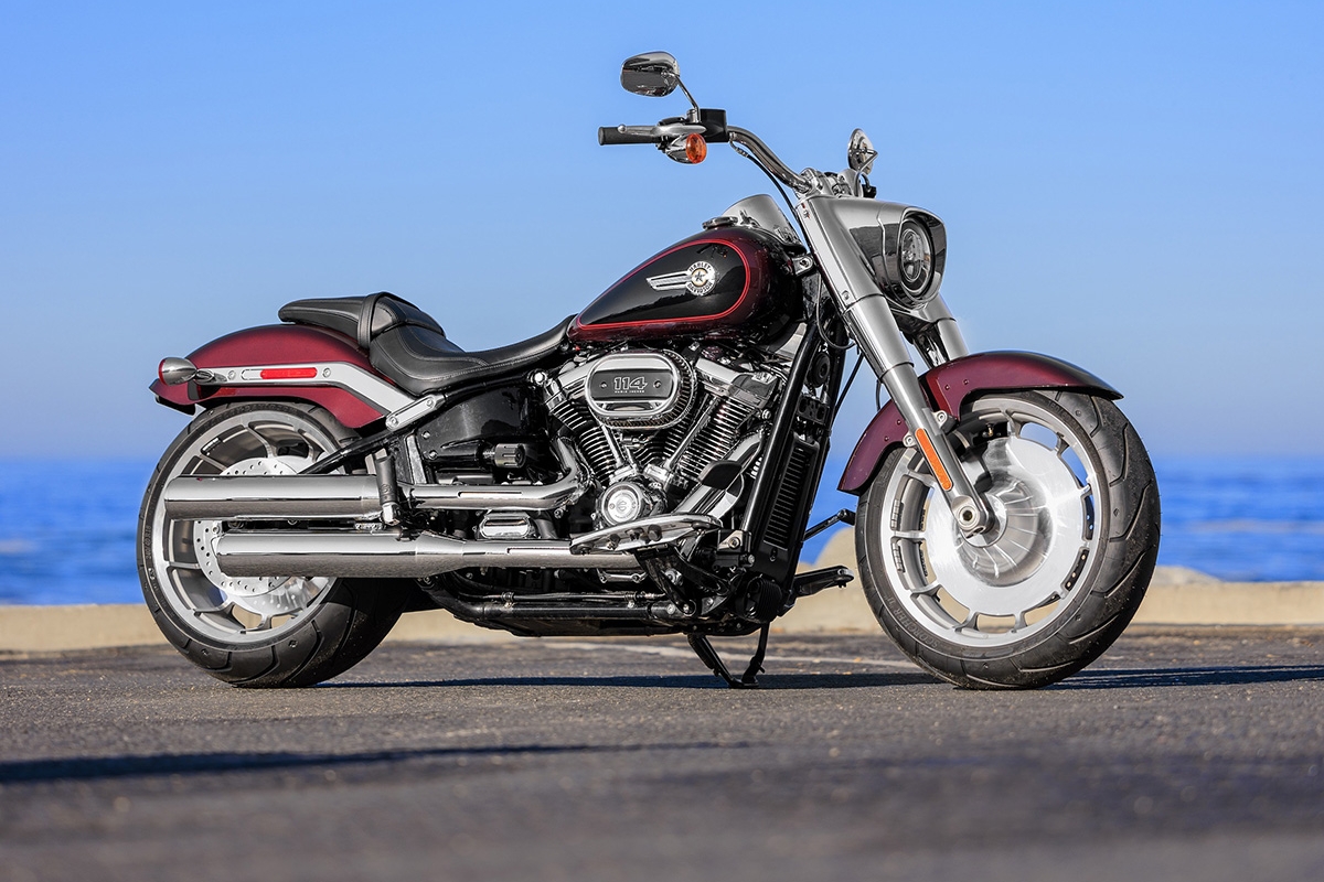 – Fat Boy 114: O ícone fat-custom original comanda a estrada com uma postura de rolo compressor. Para 2022 as suas jantes de alumínio fundido Lakester foram redesenhadas com 11 raios turbine-like e um open center e o clássico emblema do depósito da Fat Boy® foi revisto e agora tem uma única “asa” à direita enquanto mantém a estrela centralizada.