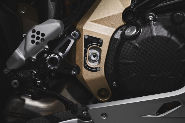 O cárter e os sistemas de lubrificação e de arrefecimento são completamente novos, enquanto foram efetuadas alterações significativas na cambota, na ignição – agora ainda mais robusta – e na caixa de velocidades, que é extraível. O sistema de distribuição apresenta um design de dupla árvore de cames à cabeça e as cames são revestidas a DLC, uma caraterística típica das motos desportivas.