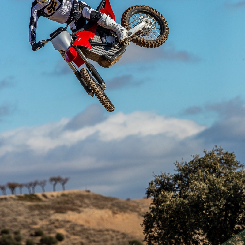 O motor elétrico debita 80 CV, algo em torno de 30% a mais do que em qualquer outra moto de 450 cmᵌ de motocross e o dobro do binário. O motor é alimentado por um sistema de baterias Stark, um dos mais compactos e poderosos do mundo, com 6kWh e peso de 32 quilos.