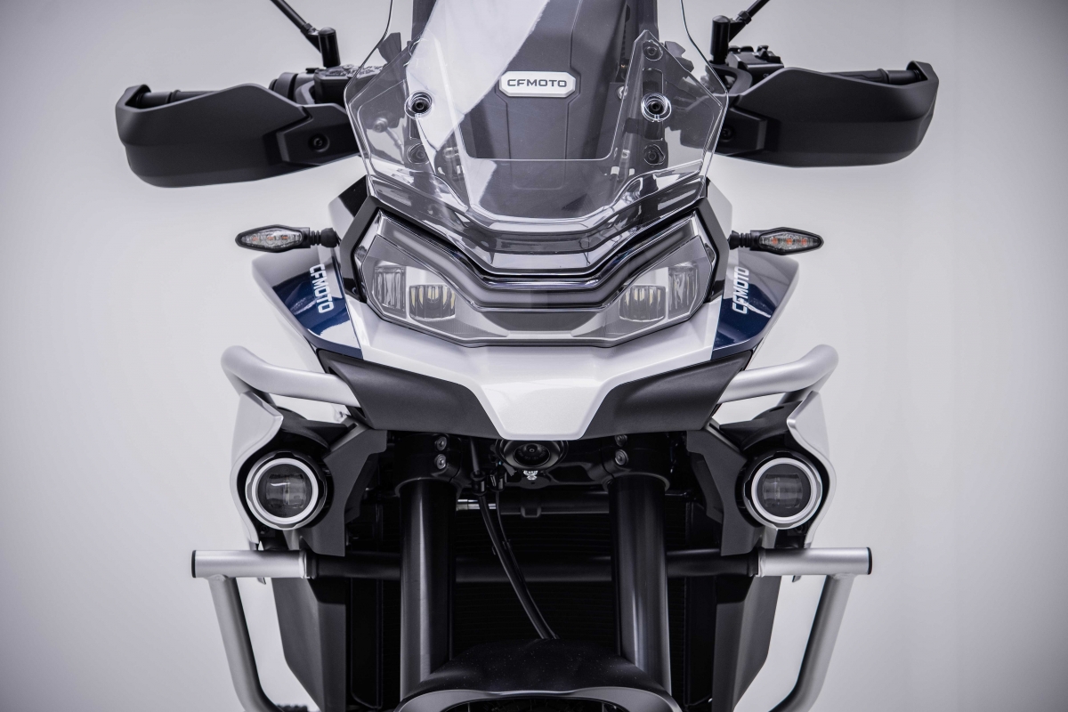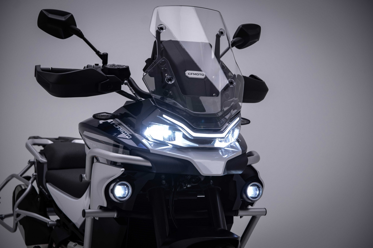 Os acabamentos de alto nível destacam-se, não só pela estética cuidada e bem dimensionada, mas também pelo equipamento que nos disponibiliza como os punhos e assento aquecidos; cruise control; tomada de 12V e duas USB e ainda a carismática T-BOX da CFMOTO que é um sistema que usa um módulo 4G e um sensor 6D que monitoriza em tempo real a informação eletrónica, posição da moto, velocidade, quilómetros apresentada na aplicação CFMOTO RIDE.