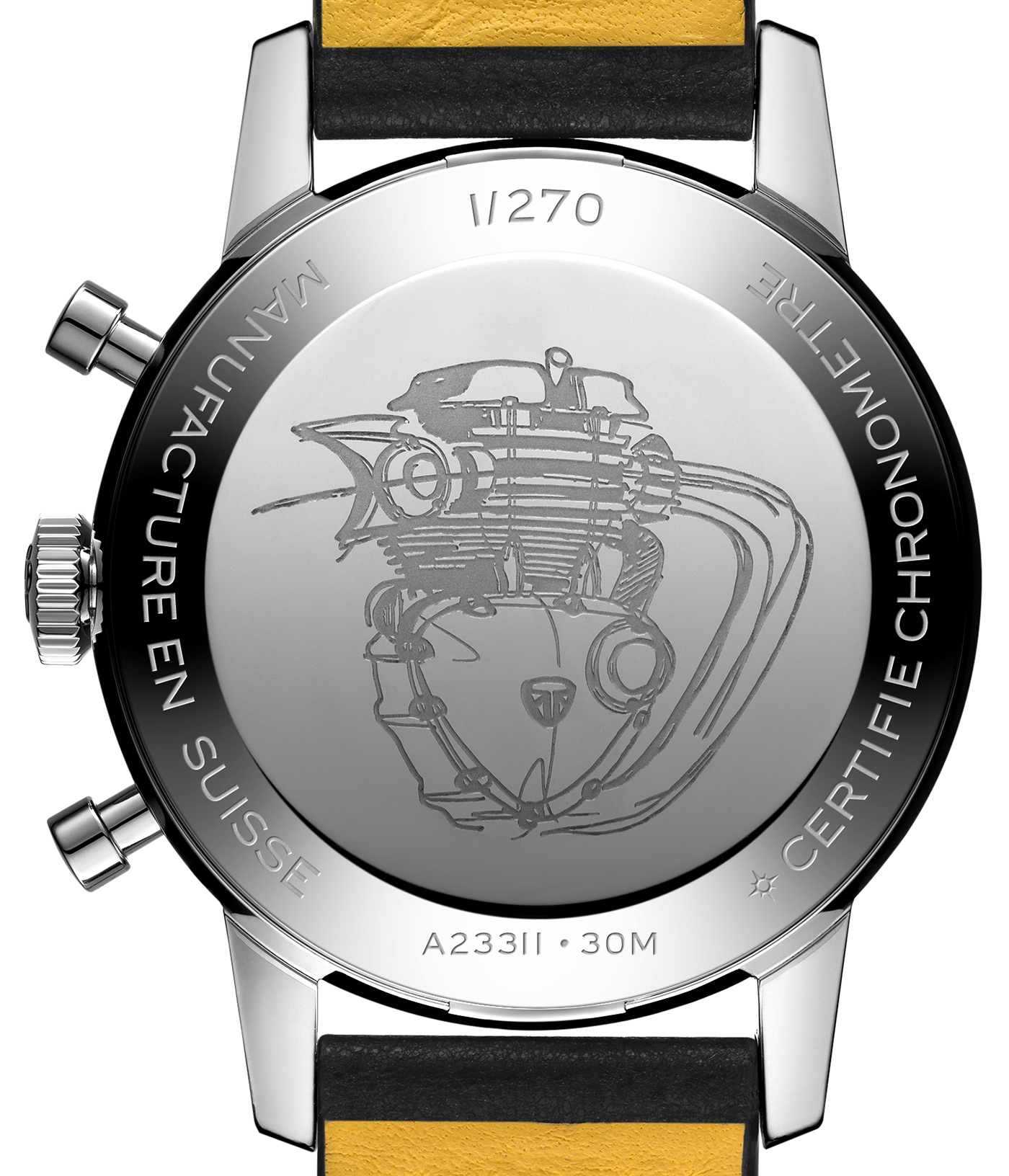 Detalhes e acabamentos Premium, como mostradores com pormenores de desenho derivados do relógio, banco em couro negro perfurado com costuras e detalhe do motor com logotipo maquinado. Suspensão traseira melhorada, recorrendo a dois amortecedores Ohlins totalmente reguláveis, com molas pintadas em negro brilhante, exclusivos para esta edição limitada.