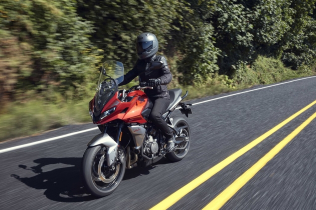 A Triumph mantém a aposta numa unidade motriz de três cilindros com 660 cc. Para esta a marca anuncia 81 CV às 10 250 rpm e um binário de 64 Nm às 6250 rpm.