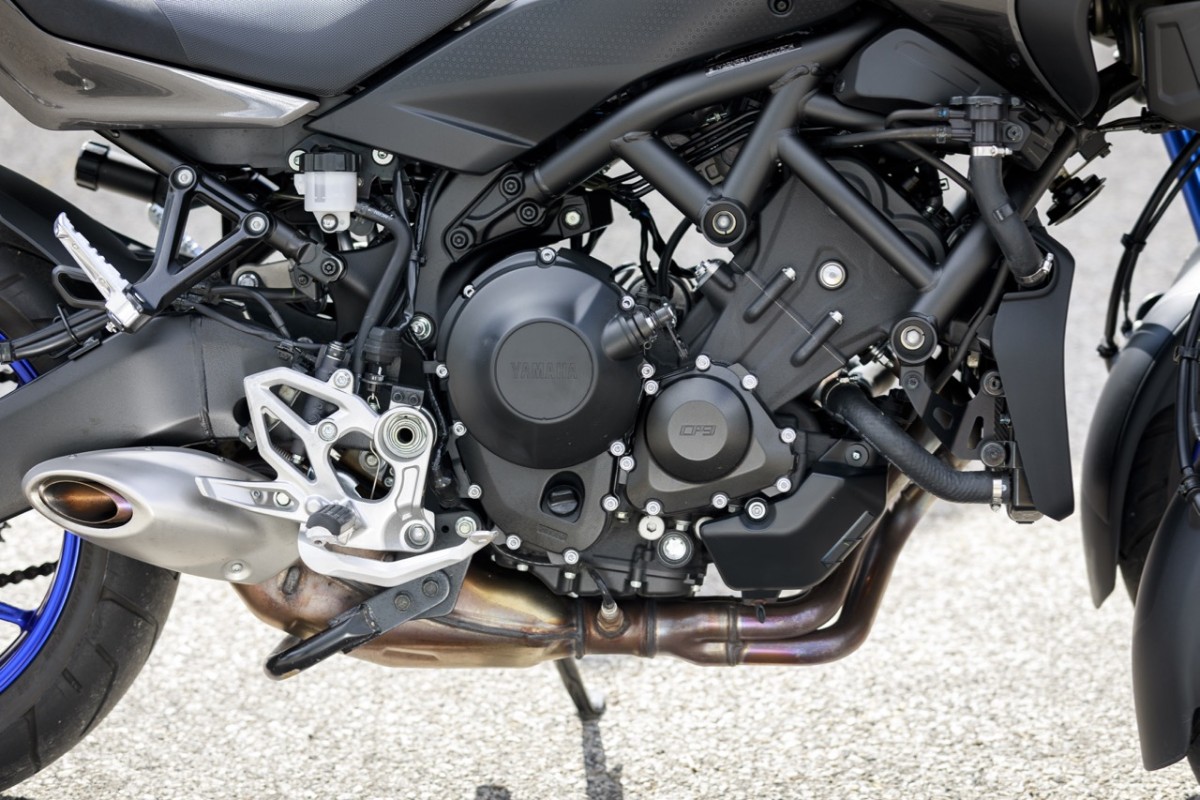 As rodas dianteiras de 15” distam entre si apenas 410mm e têm uma distância entre eixos relativamente à roda traseira de 1510mm ou seja, apenas mais 110mm do que na MT09. Ao quadro produzido em tubos de aço do tipo diamante é acoplado um braço oscilante em alumínio. A travagem é excelente graças aos discos duplos dianteiros de 298mm ajudados por ABS. A suspensão traseira é também totalmente ajustável em pré-carga, compressão e extensão.