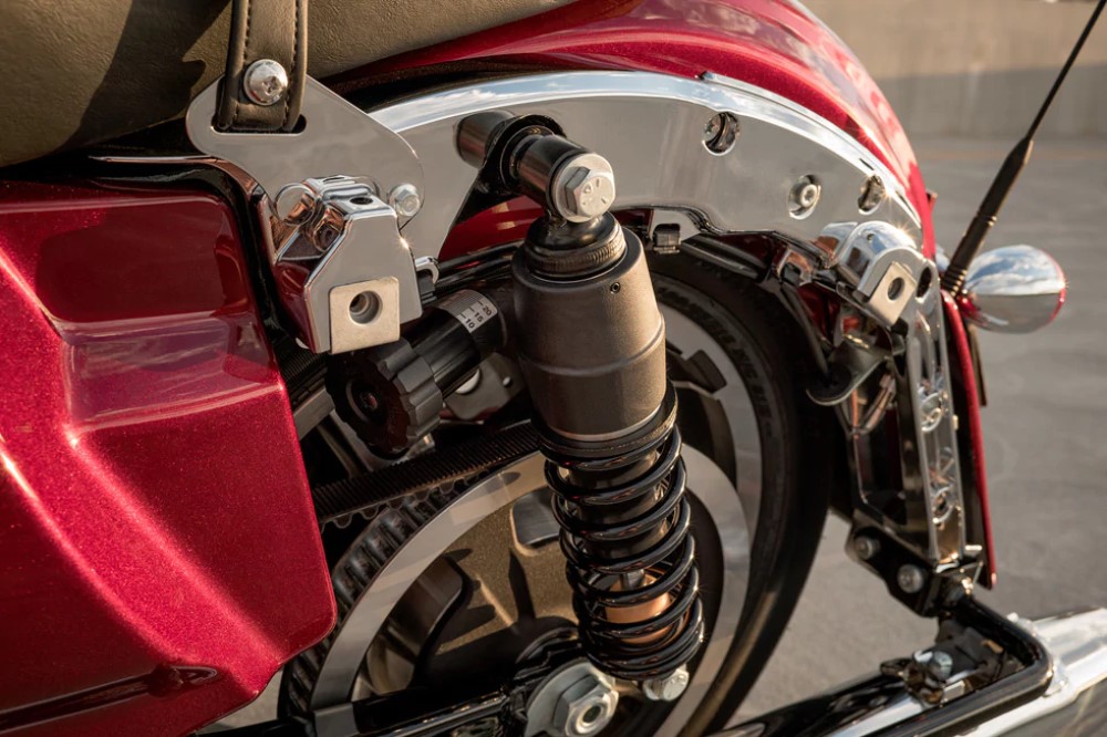 A suspensão dianteira e traseira está equipada com válvulas “dual bending” totalmente redesenhada com amortecedores de emulsão facilmente ajustáveis. Foi rebaixada em 2,54 cm para lhe dar mais conforto, mais controlo e mais confiança na sua condução.