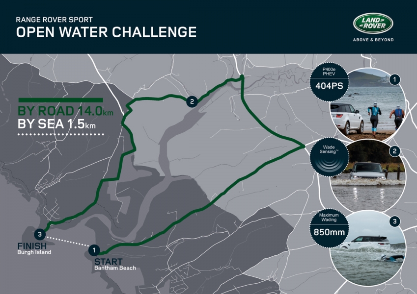 O Range Rover Sport de tecnologia plug-in híbrida, o P400e, enfrentou dois experientes nadadores em águas abertas no trajeto de 14 kms que liga Bantham Beach a Burgh Island, em South Devon, no Reino Unido, no vídeo de apresentação deste que é o primeiro Range Rover Sport híbrido. Keri-anne Payne, bicampeã do mundo de natação em águas abertas e Ross Edgley, atelta de resistência, tinham pela frente um percurso de 1,5 kms em águas agitadas. Por sua vez, e para tornar o desafio mais difícil para o SUV da Land Rover, o P400e teria de completar a totalidade do trajeto.