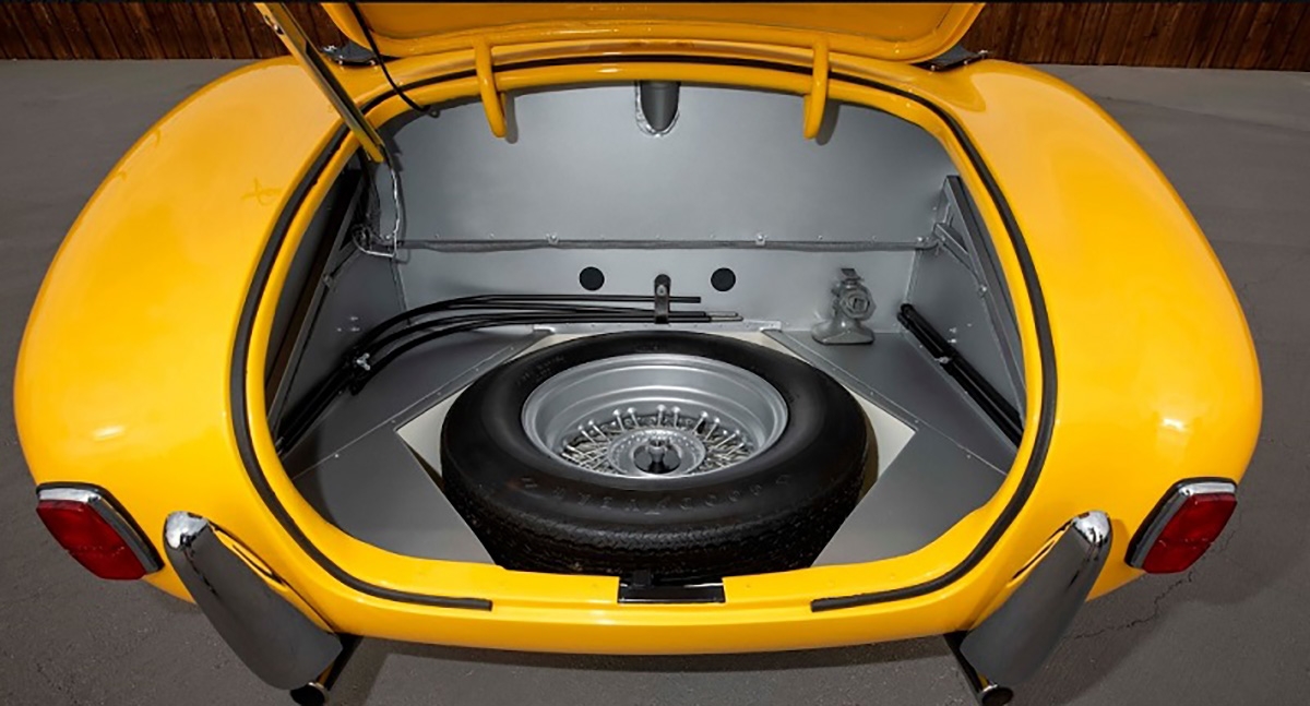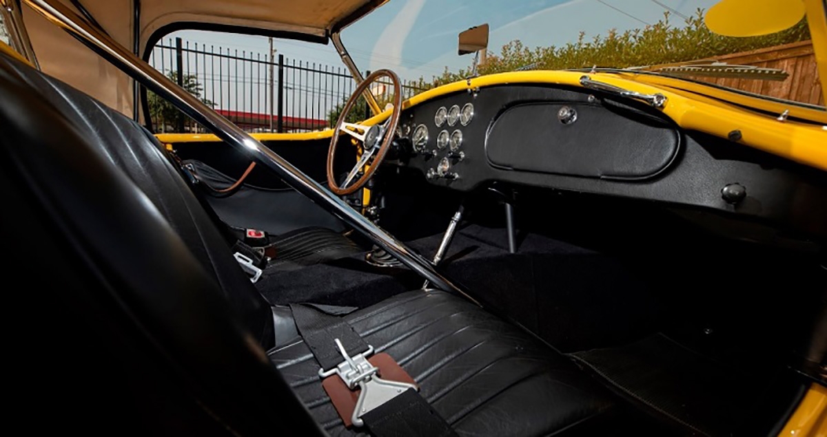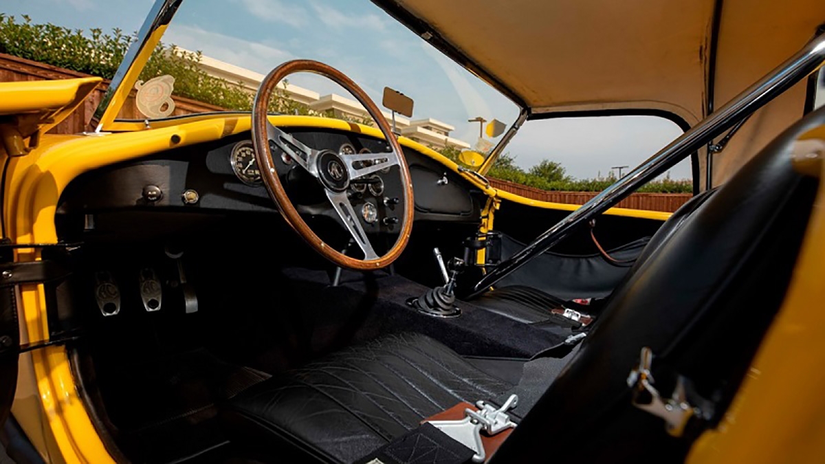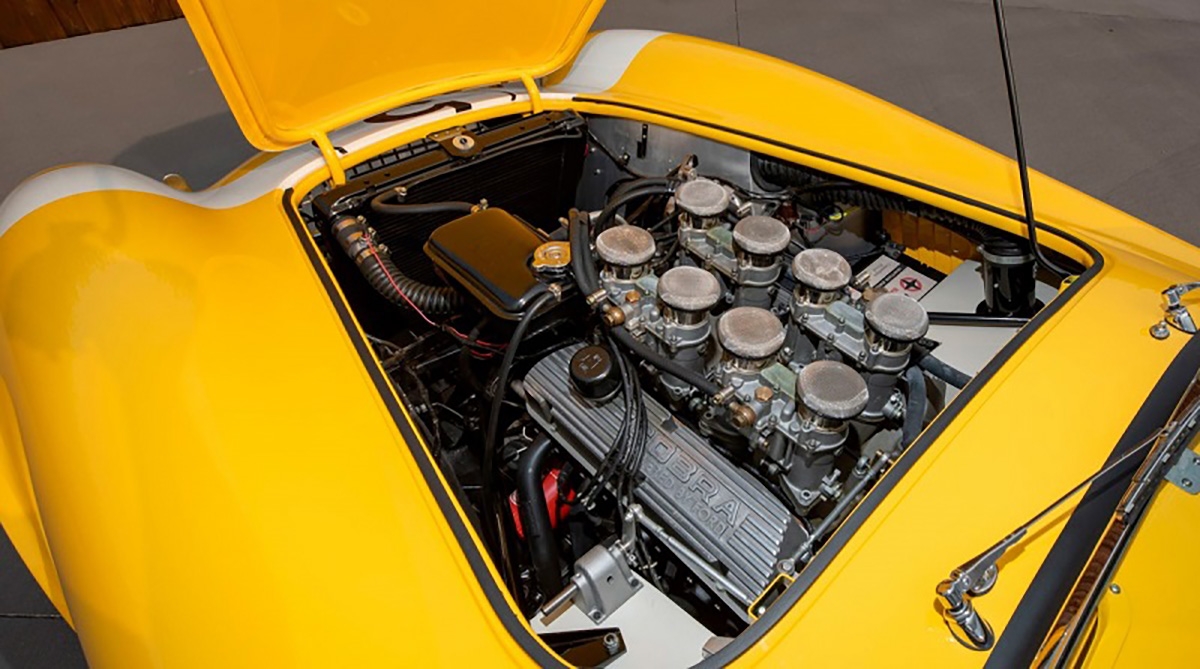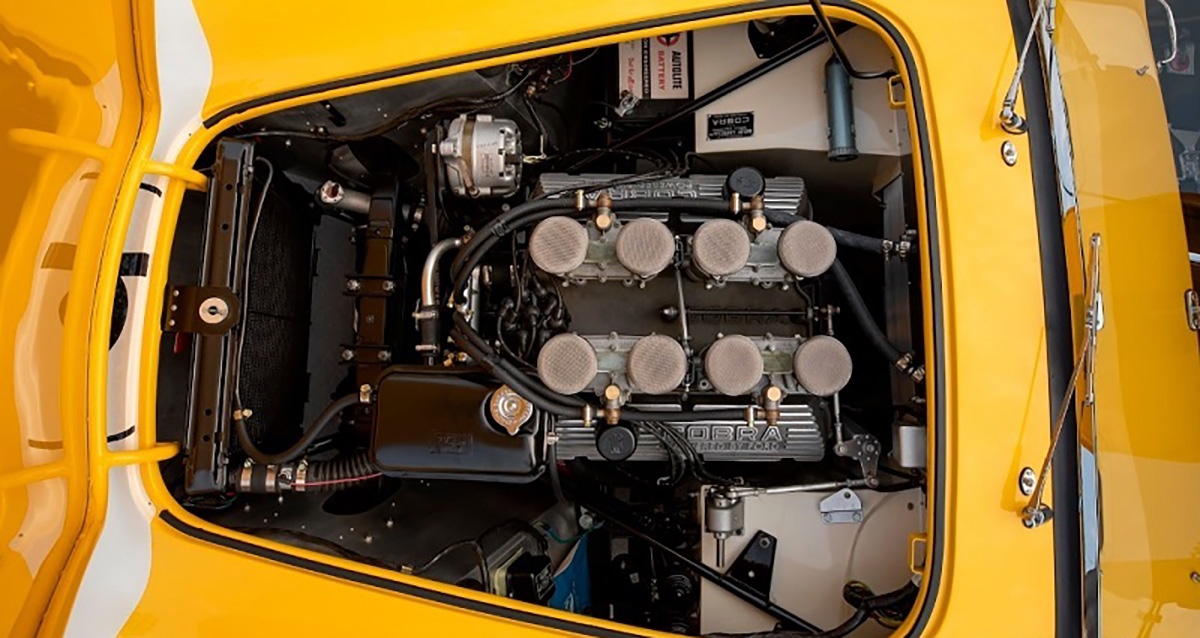 Este Cobra Dragonsnake é ainda mais especial, pois foi o único equipado com quatro carburadores duplos Weber. O motor V8 289, de 4,7 litros de cilindrada, está acoplado a uma caixa manual de quatro velocidades.